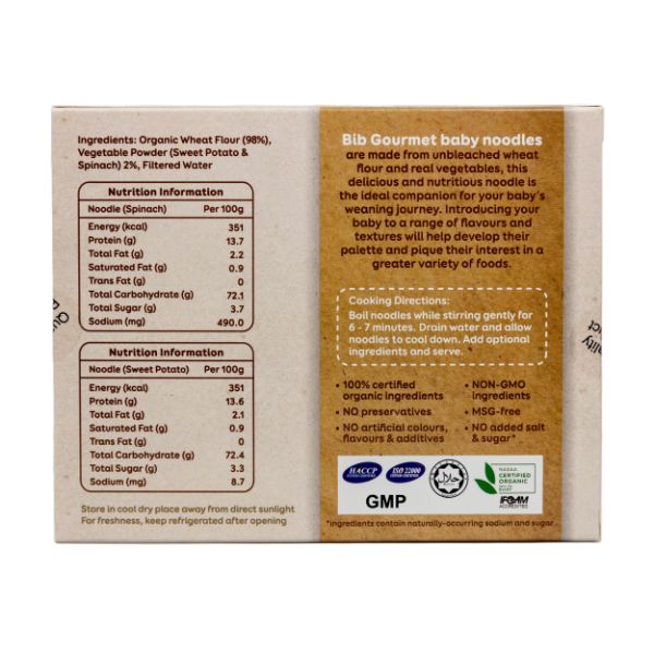 Deliciously Bib baby noodles are made from unbleached wheat flour and real vegetables. This delicious and nutritious noodles is the ideal companion for your baby's weaning journey. Introducing your baby to a range of flavours and textures will help develop their palette and pique their interest in a greater variety of foods.