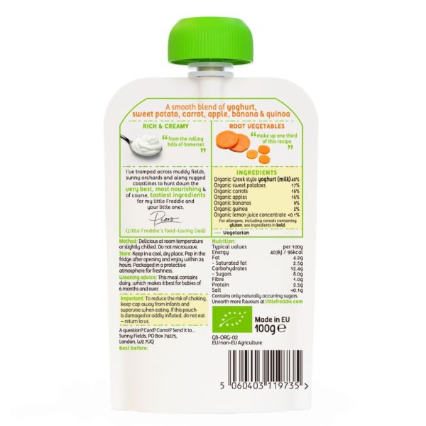 Italian carrots with their distinct flavour pair perfectly with nourishing sweet potato to create a great introduction to savoury flavours. Crisp apple and mellow banana are added to complete this recipe which is a source of calcium.
