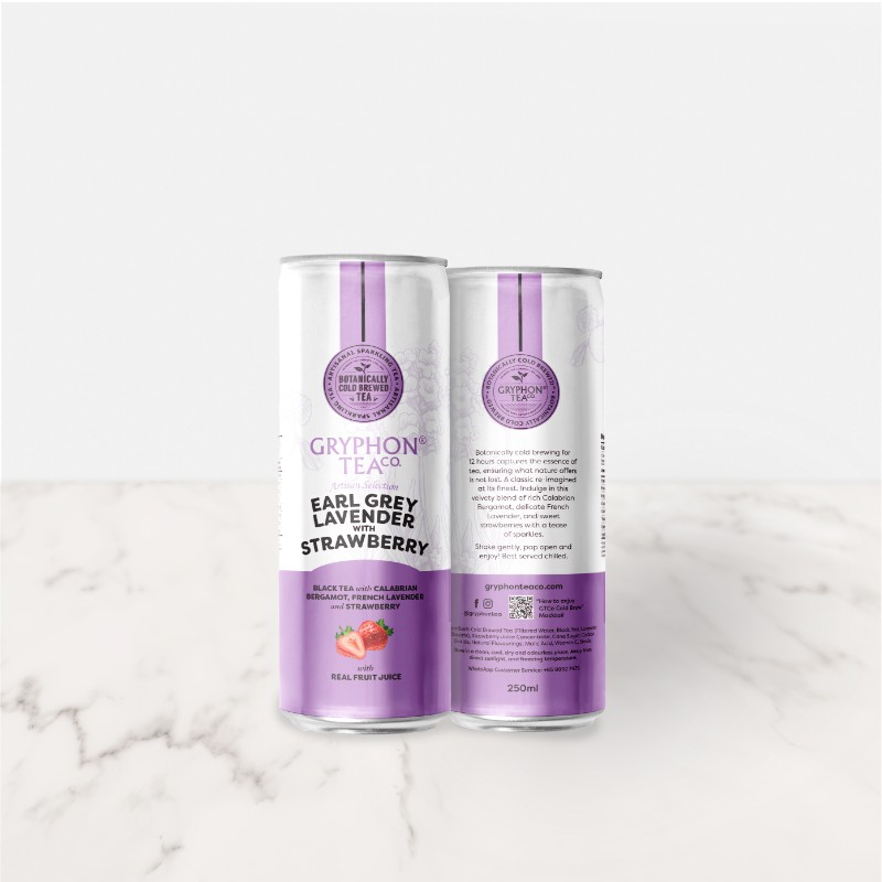 Gryphon Tea's Artisan Earl Grey Lavender re-imagined at its finest - a beloved blend considered as one of the most approachable types of tea in the tea world. Botanically cold brewed for no less than 12 hours, Earl Grey’s distinct floral, yet citrusy profile from Calabrian Bergamot gives it a remarkable versatility in all variations and makes the most enthralling drink when infused with sweet strawberries and natural cane sugar. The perfect treat for your senses with a touch of light bubbles!
