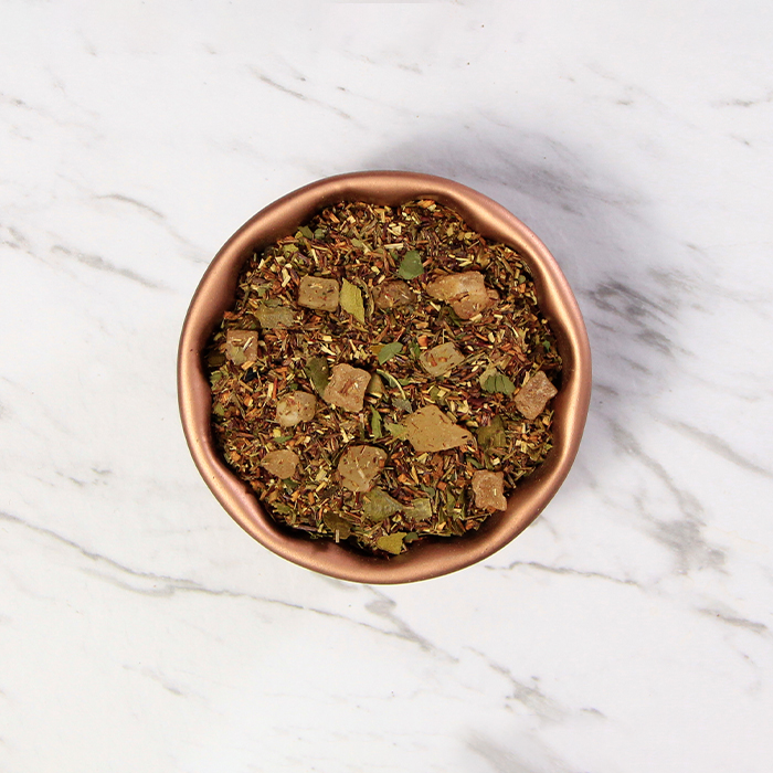 INGREDIENTS: Rooibos, Greenbush, Lemon myrtle, Candied mango and pineapple, Peppermint leaves, Basil leaves, Lemon peel
