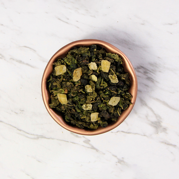 INGREDIENTS Oolong tea, Candied mango, Jasmine petals, Cornflowers