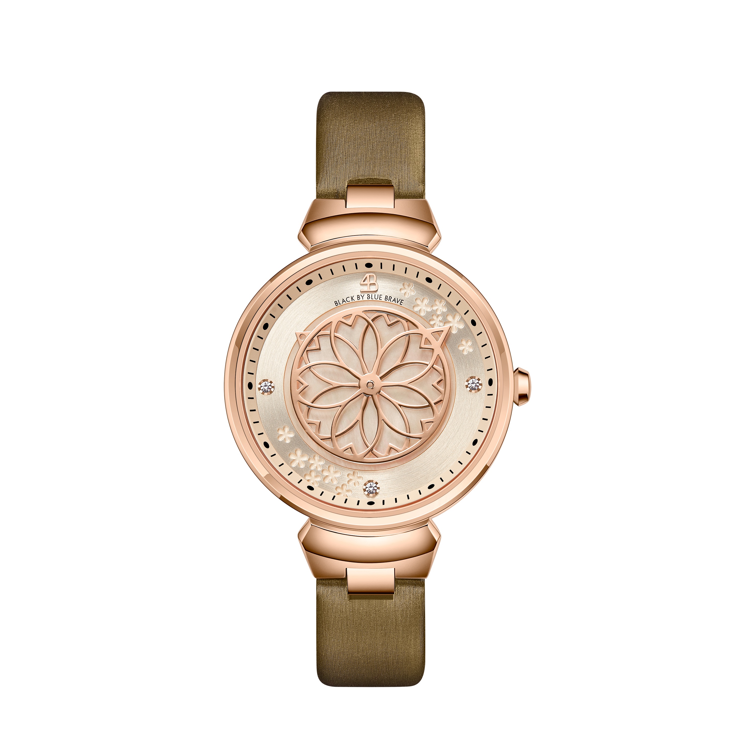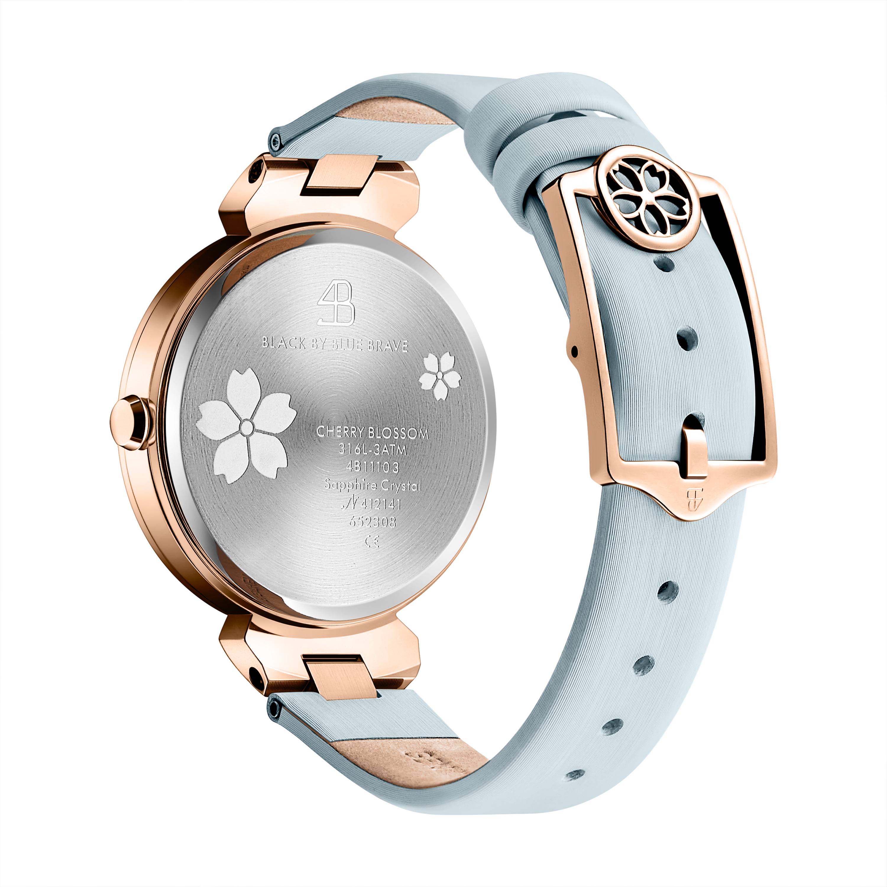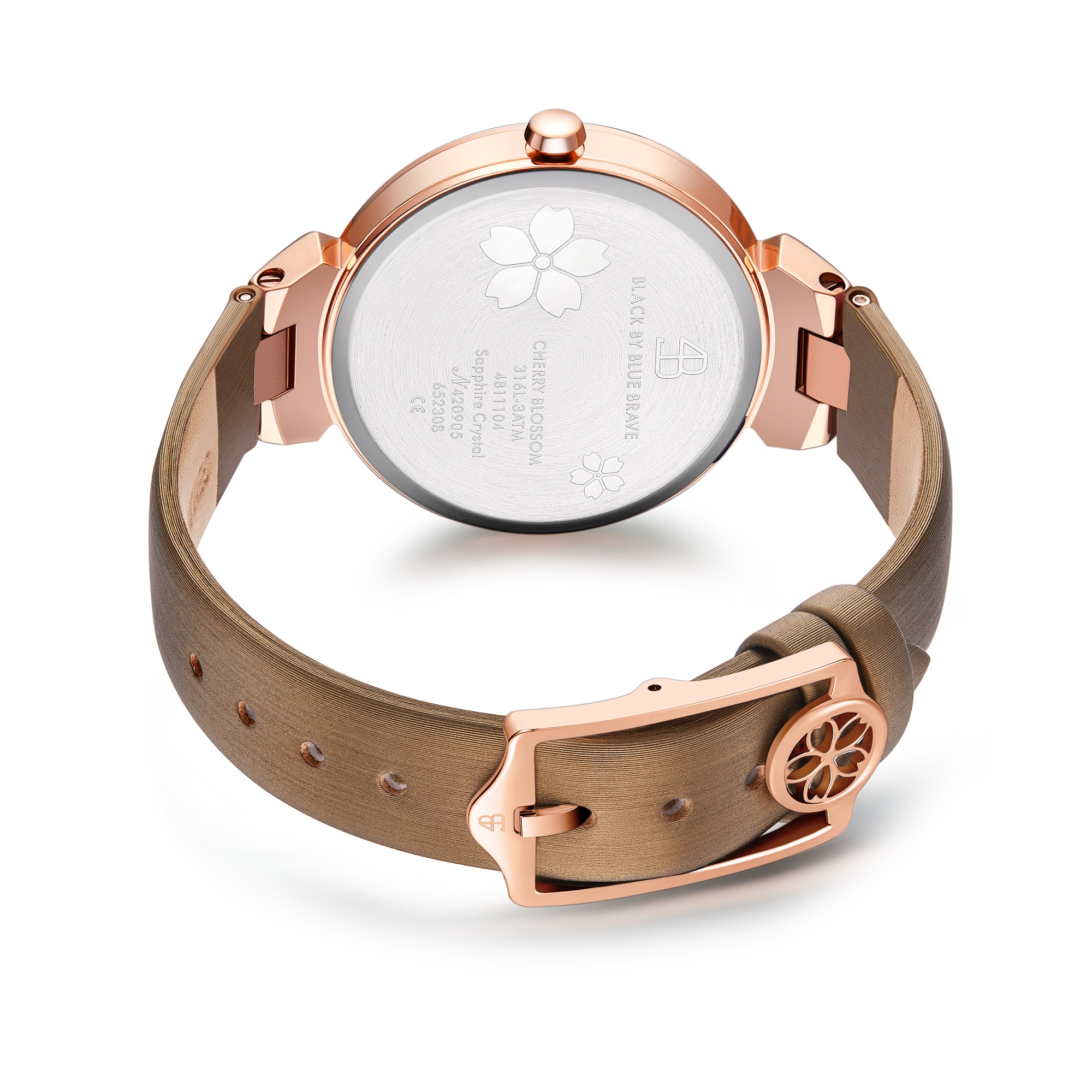 BLACK BY BLUE BRAVE’s signature Cherry Blossom petals motif is trademarked in all major countries, lending a sense of authenticity and exclusivity to the Cherry Blossom timepiece.