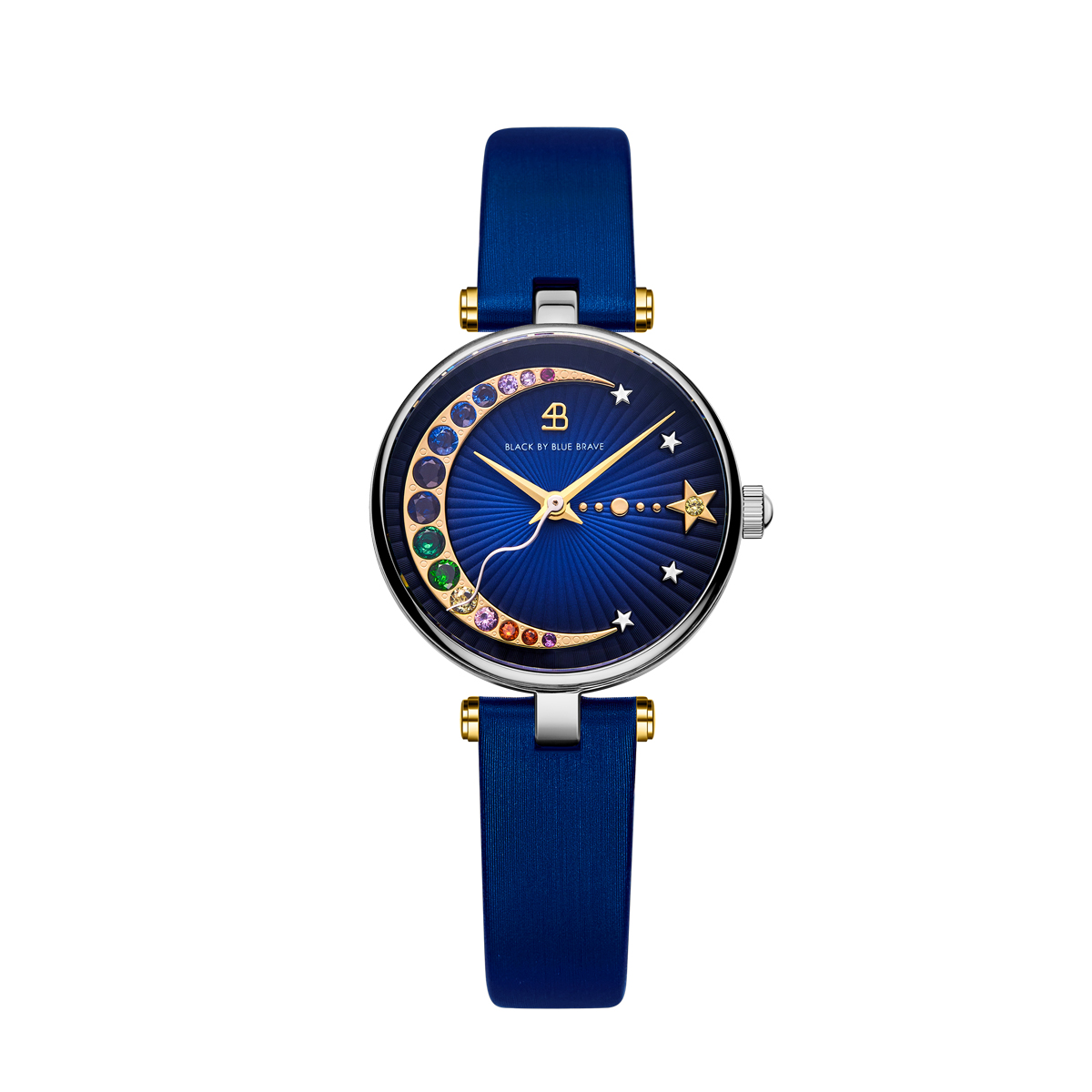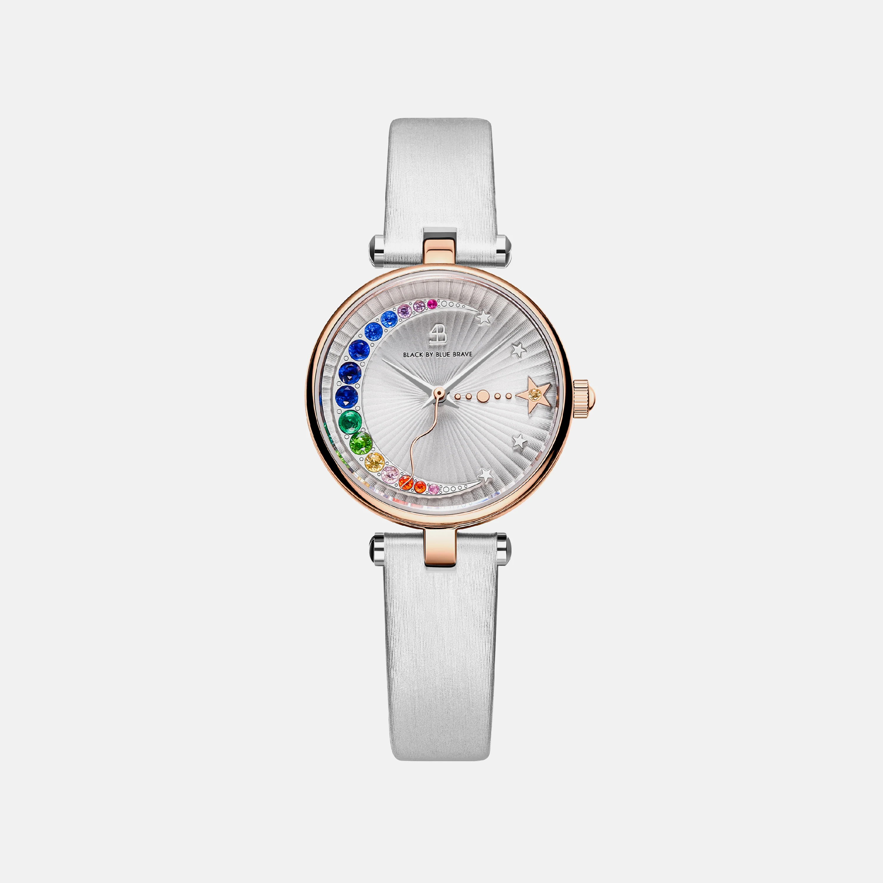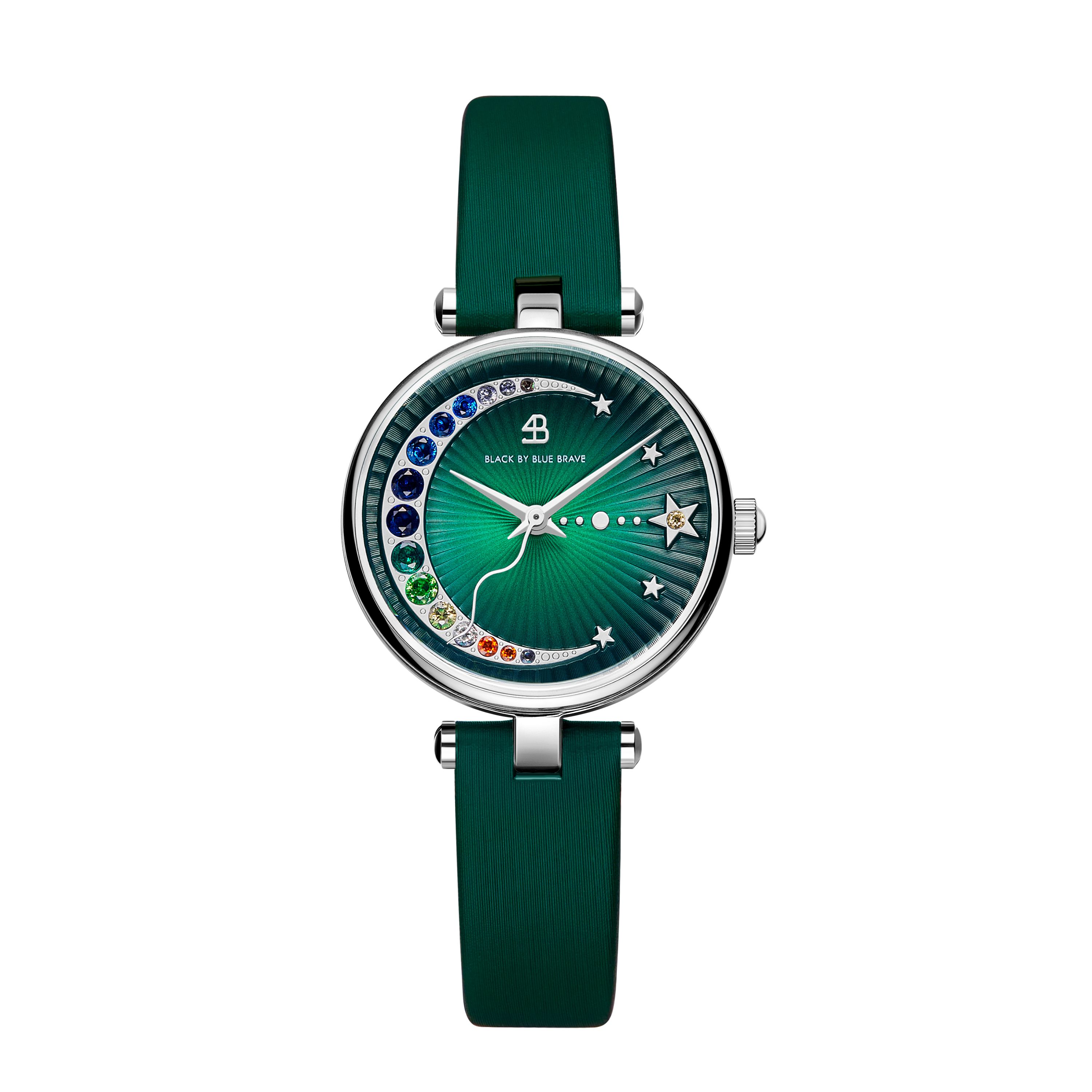 The moon and the star at 3 o’clock features 15 embellished crystals in ten different hues, symbolising a global city embracing diverse international perspectives.