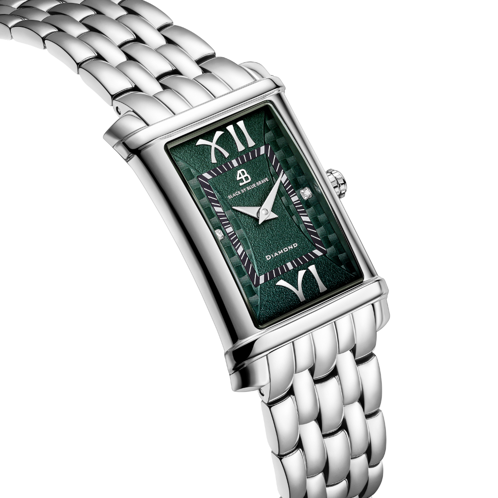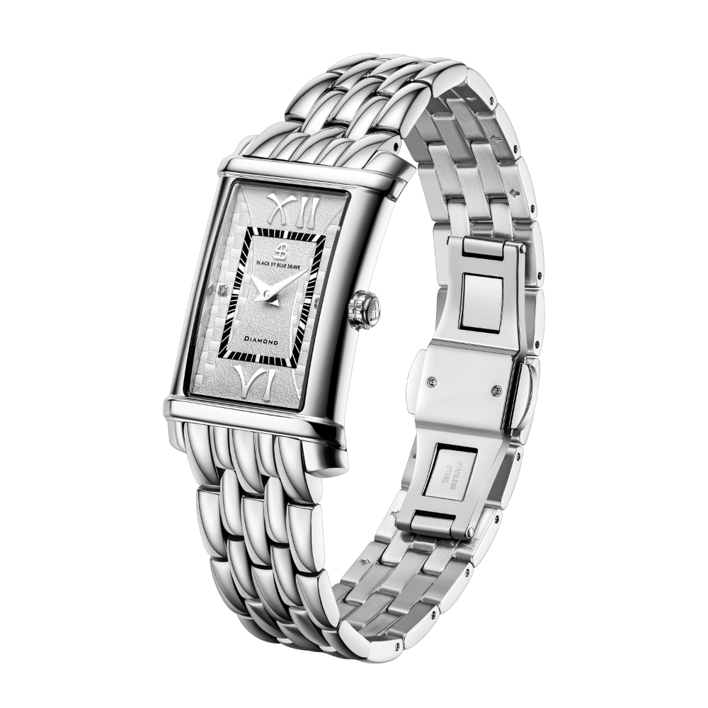This timeless yet stylish timepiece complements everyday fashion with its classic rectangular design and embodies resilience, strength and determination, a powerful statement of woman power and grace.