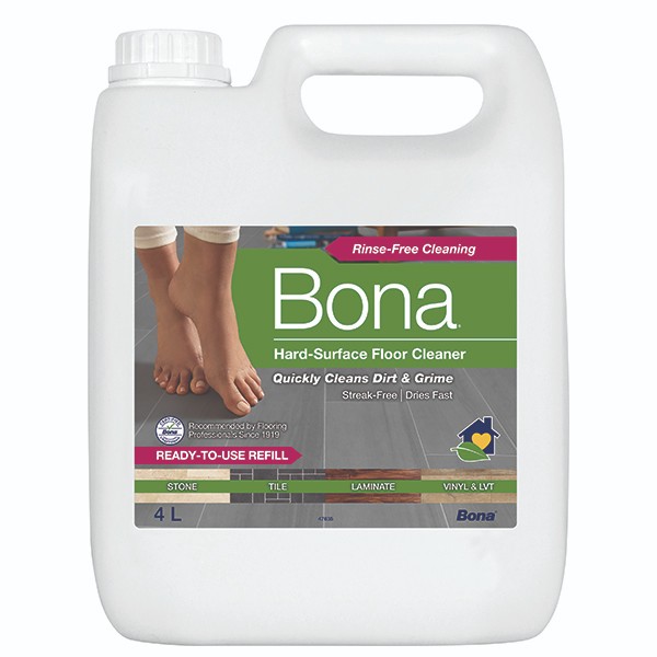 Bona Hard-Surface Floor cleaner is a rinse-free, streak-free formula that cleans hard-surface floors effectively by removing dust, dirt and grime.