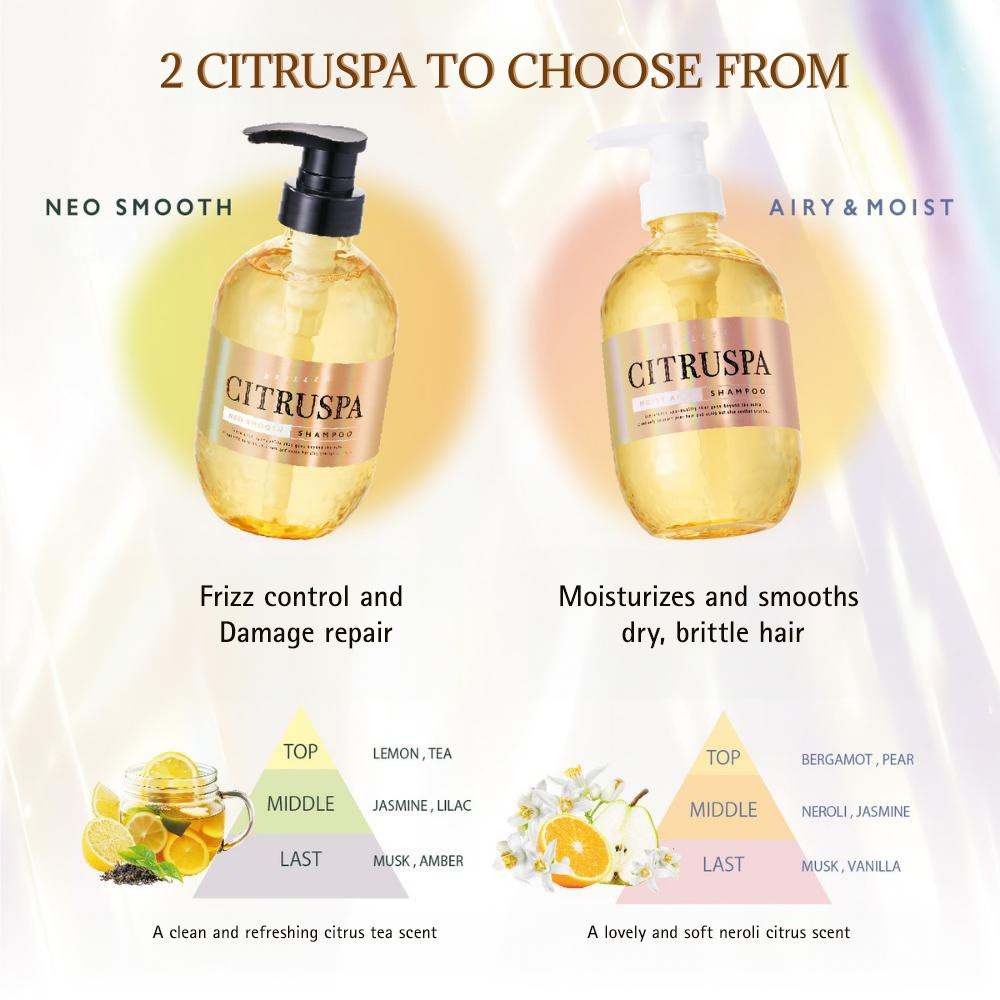 A resort spa treatment that gives rest to your hair and scalp. The Airy & Moist formula has further evolved, leading to smooth and shiny hair. Citrus tea scent.