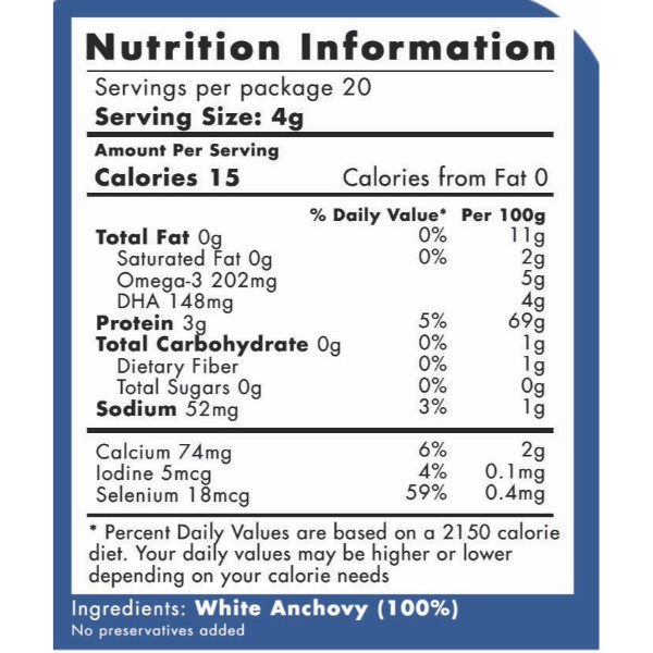 Our product purely contains Premium White Anchovy with no added preservatives, colouring, sugar or salt. Safe for consumption for babies above 6 months, pregnant women and elderlies.