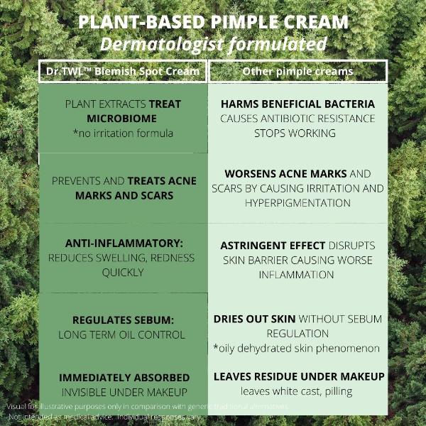 Power packed plant based dermatologist pimple cream formulated using bioactive botanical extracts to quickly reduce and inhibit spot inflammation.
