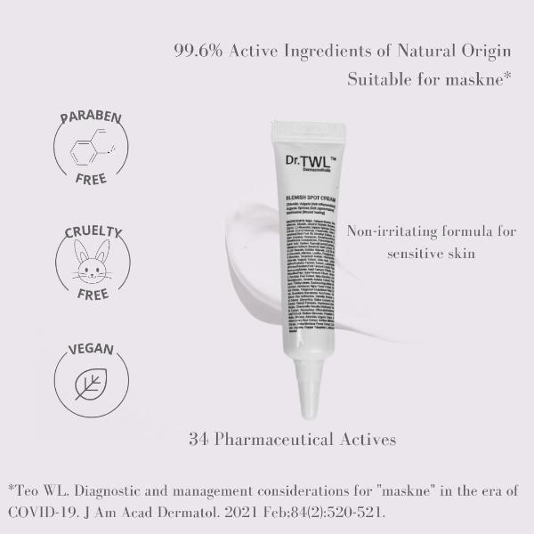 *The Blemish Spot Cream is formulated to be fabric friendly and does not bleach or leave a stain on fabrics. Perfect for use under a face mask for treating of mask acne.