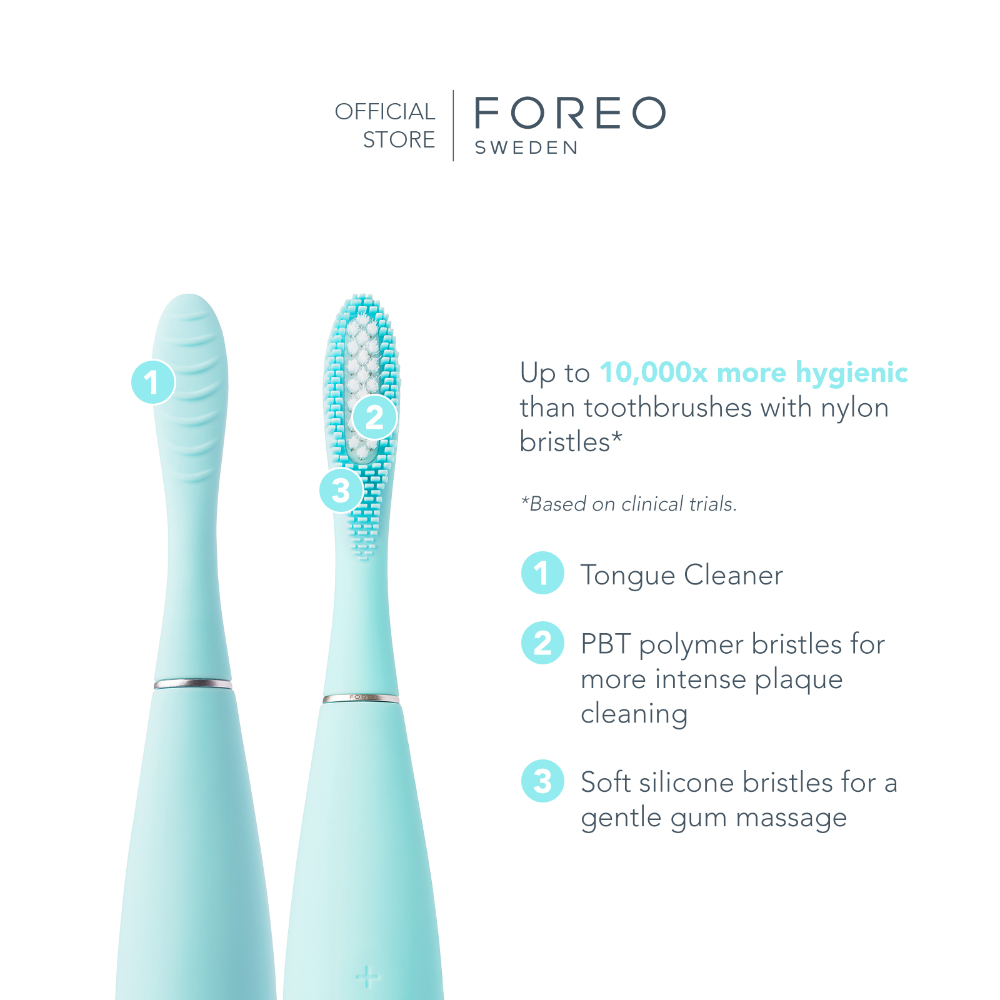 • Silicone and PBT polymer hybrid brush head is strong on plaque, while remaining gentle on gums