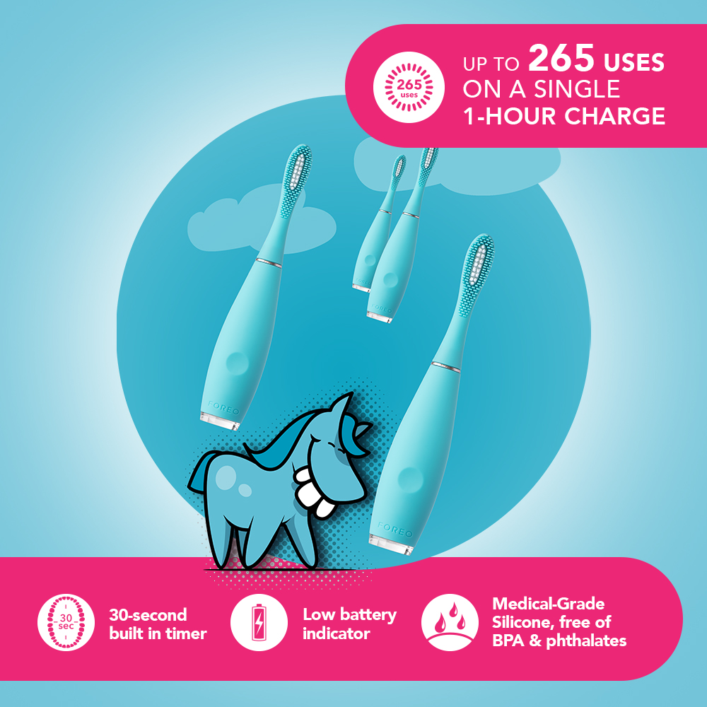 • Smile Helpers Glee & Glum and built-in timer help establish proper oral care habits