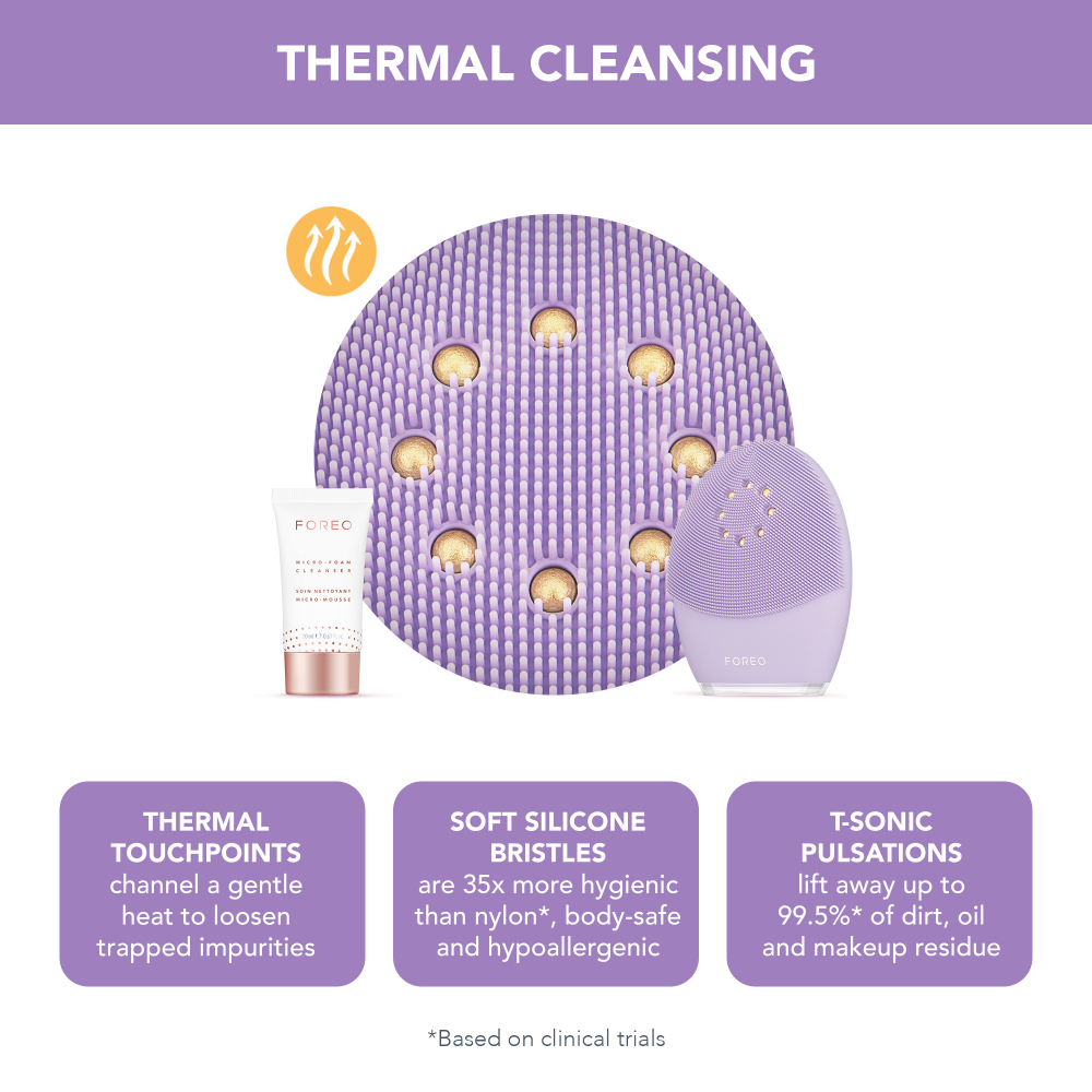 • Gentle heat expels dirt, oil, and makeup from pores for a radiant complexion