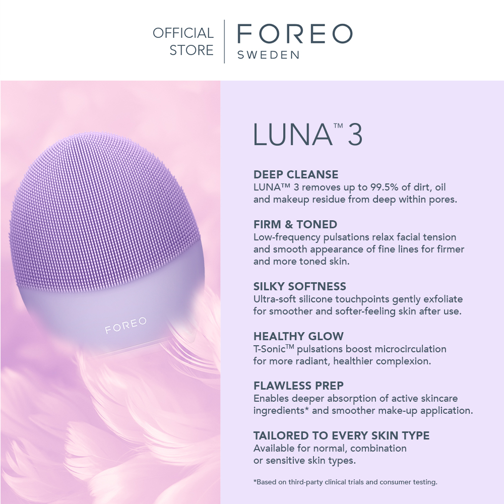 • Tailor-made for senstive skin, extra-soft brush head, LUNA™ 3 remains extremely gentle on sensitive skin without irritation, not compromising its deep cleansing ability.