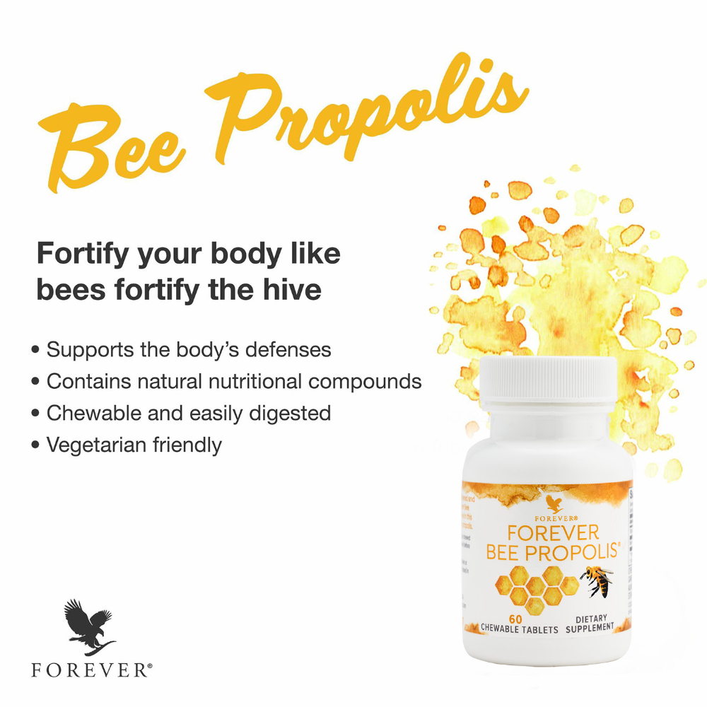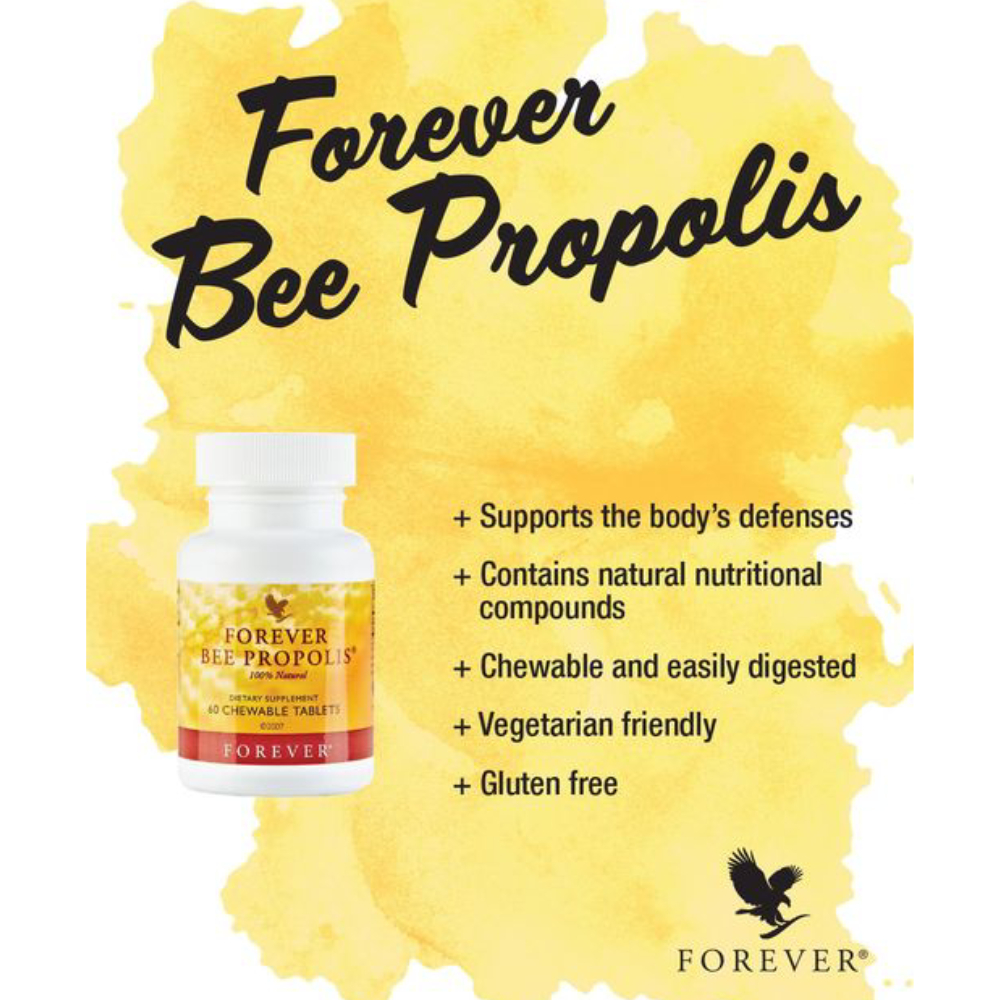 Forever Bee Propolis is gathered from pollution-free regions. To further assure purity, specially designed bee propolis collectors are used. Forever Bee Propolis is 100% natural with no added preservatives or artificial colors. It is also an excellent natural food form, loaded with nutrients such as vitamins, minerals, enzymes, amino acids, and a rich supply of other elements in trace amounts.