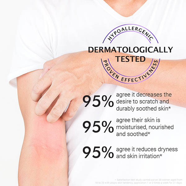 No added fragrance. It offers immediate and long-lasting comfort, while reducing the urge to scratch. Belle de Nuit extract soothes and reduces redness due to irritation and Organic Shea Butter nourishes and preserves the skin's barrier function, while Organic Aloe Vera moisturizes the skin