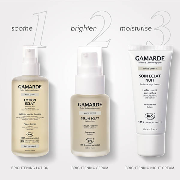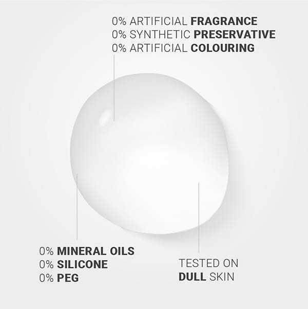 Formulated With GWE® lightening complex of 100% natural active ingredients, extracted from organic bearberry & liquorice with parsley, carrot or celery essential oils.