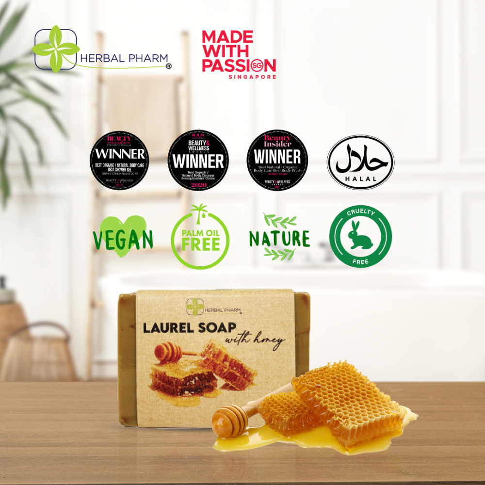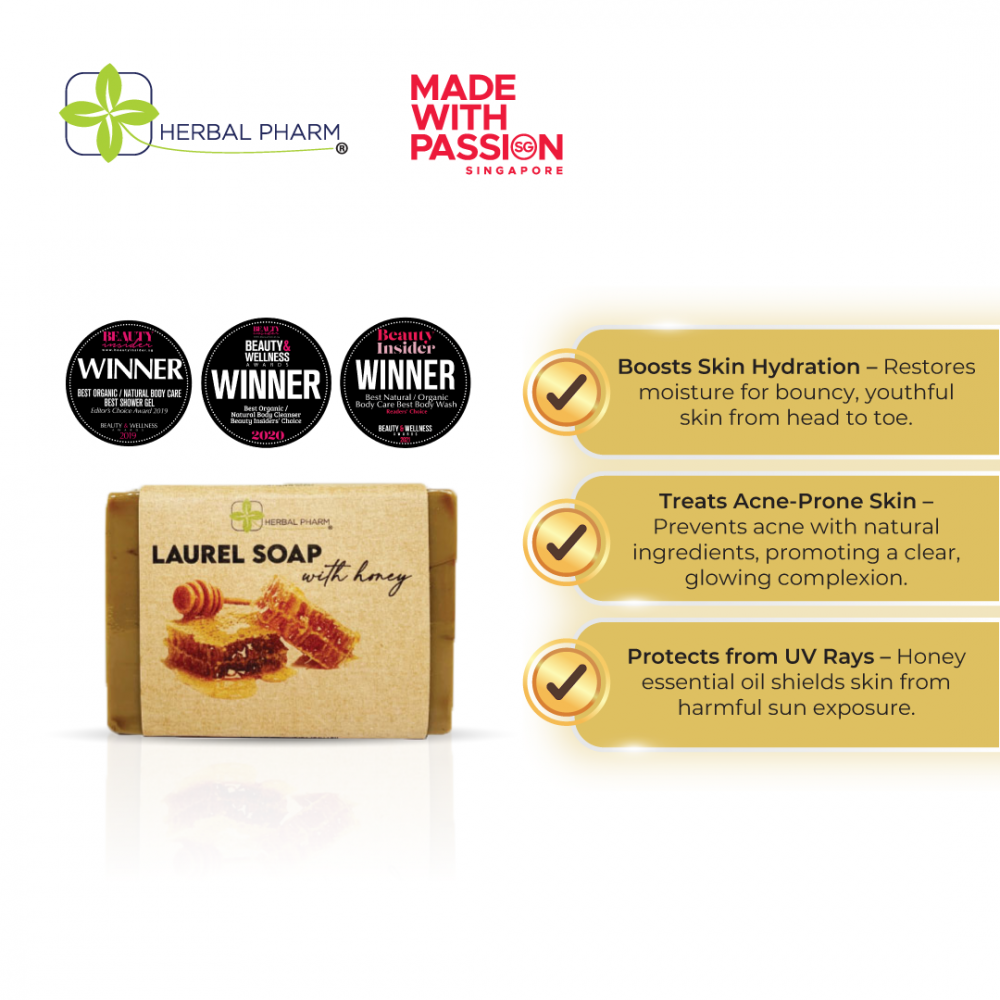 Herbal Pharm Laurel Soap with Honey – 125g | Natural Cleanse, Deep Hydration & Sun Protection