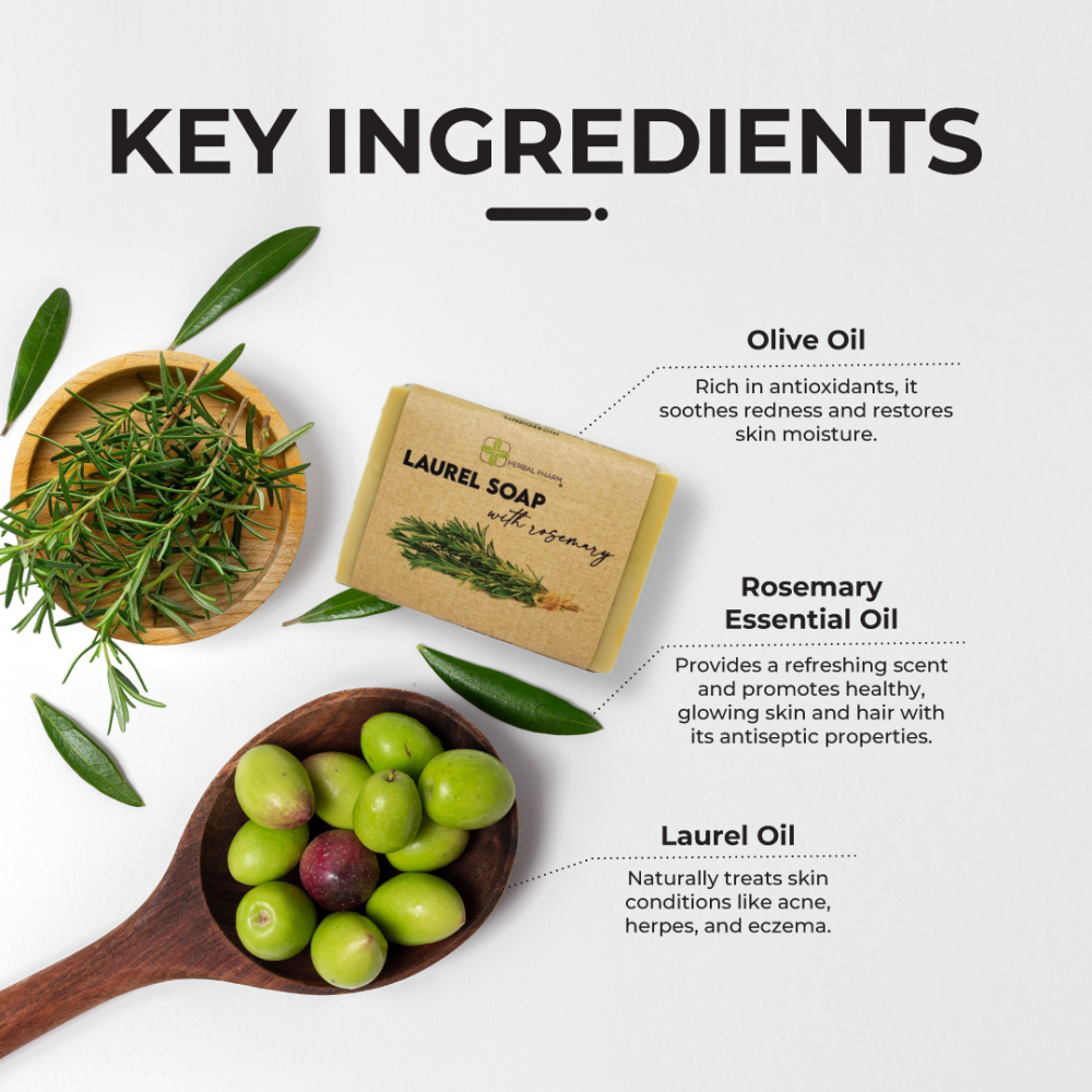 Herbal Pharm Laurel Soap with Rosemary – Natural Soap for Skin & Scalp Health