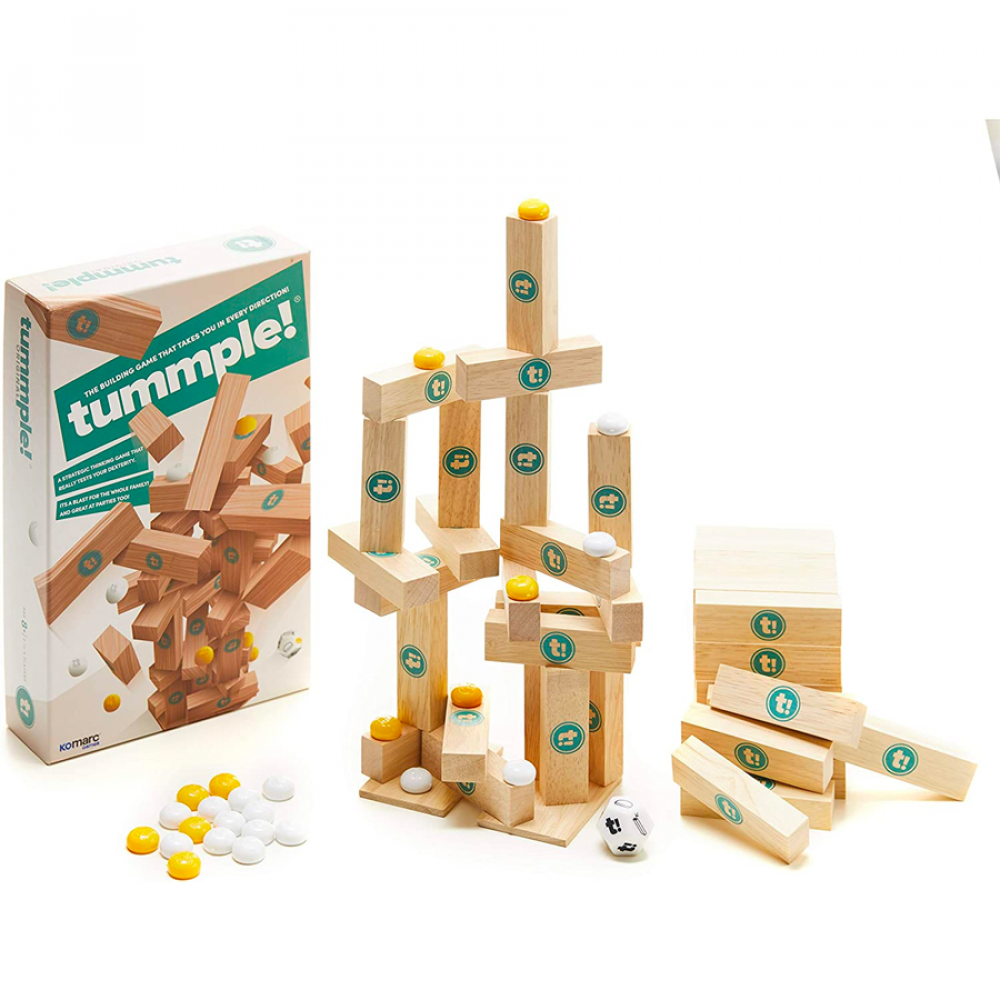 The building game that takes you in every direction tummple! It's a blast for the whole family, and great at parties too. Strategically place wood bricks and obstacles, called 'tumps'... watching the structure form... up, down, sideways and every way. Build it, name it, love it, memorialize it!