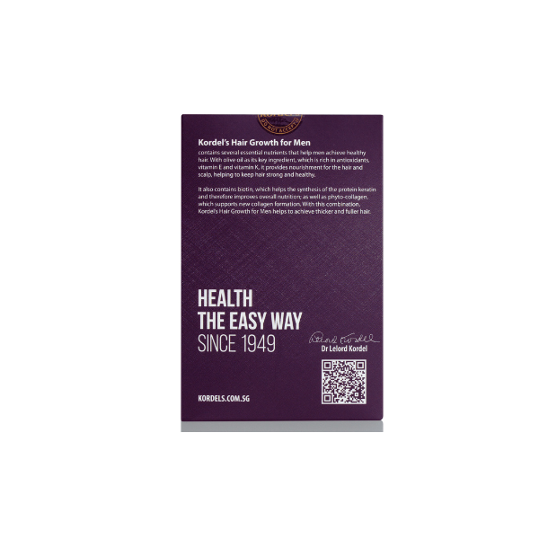 It also contains biotin, which helps the synthesis of the protein keratin and therefore improves overall nutrition, as well as phyto-collagen, which supports new collagen formation. With this combination, Kordel’s Hair Growth for Men helps to achieve thicker and fuller hair.