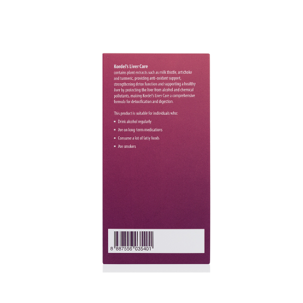 Kordel's Liver Care contains plant extracts such as milk thistle, artichoke and turmeric, providing anti-oxidant support, strengthening natural body cleansing process as well as promoting healthy liver function, making Kordel's Liver Care a comprehensive formulation for liver health and digestion.