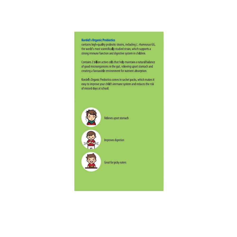 Kordel's Organic Probiotics comes in sachet packs, which makes it easy to improve your child's immune system and reduces the risk of missed days at school.