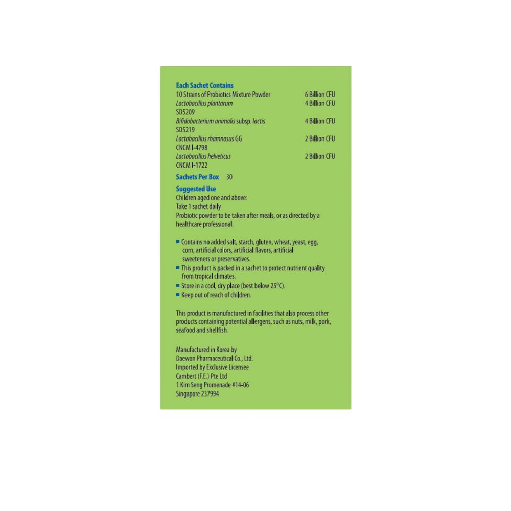 Probiotic powder to be taken after meals, or as directed by