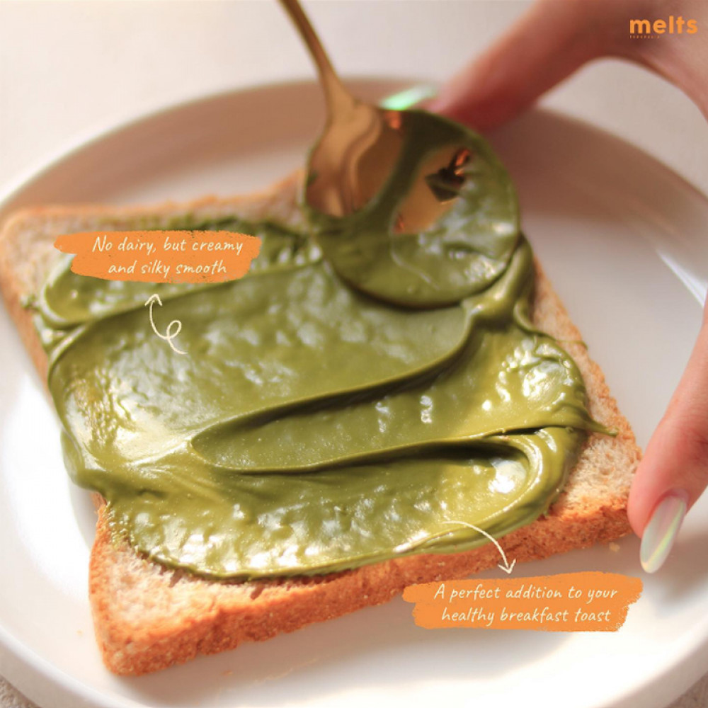 Melts spread comes in 3 different flavors: Matcha, Dark Chocolate and Hazelnut. Makes sure to try them all and taste this addictive plant based spreads!