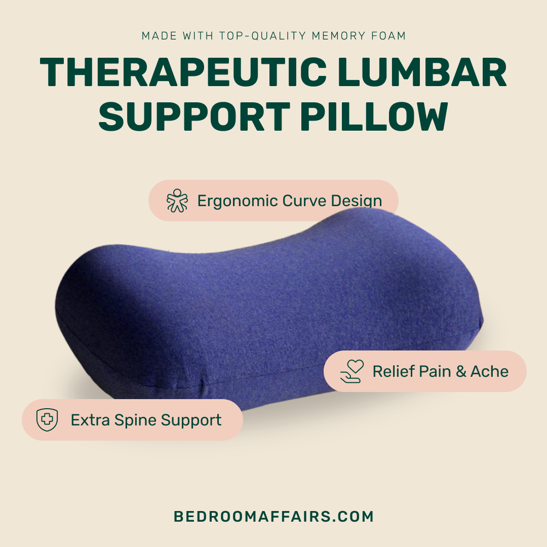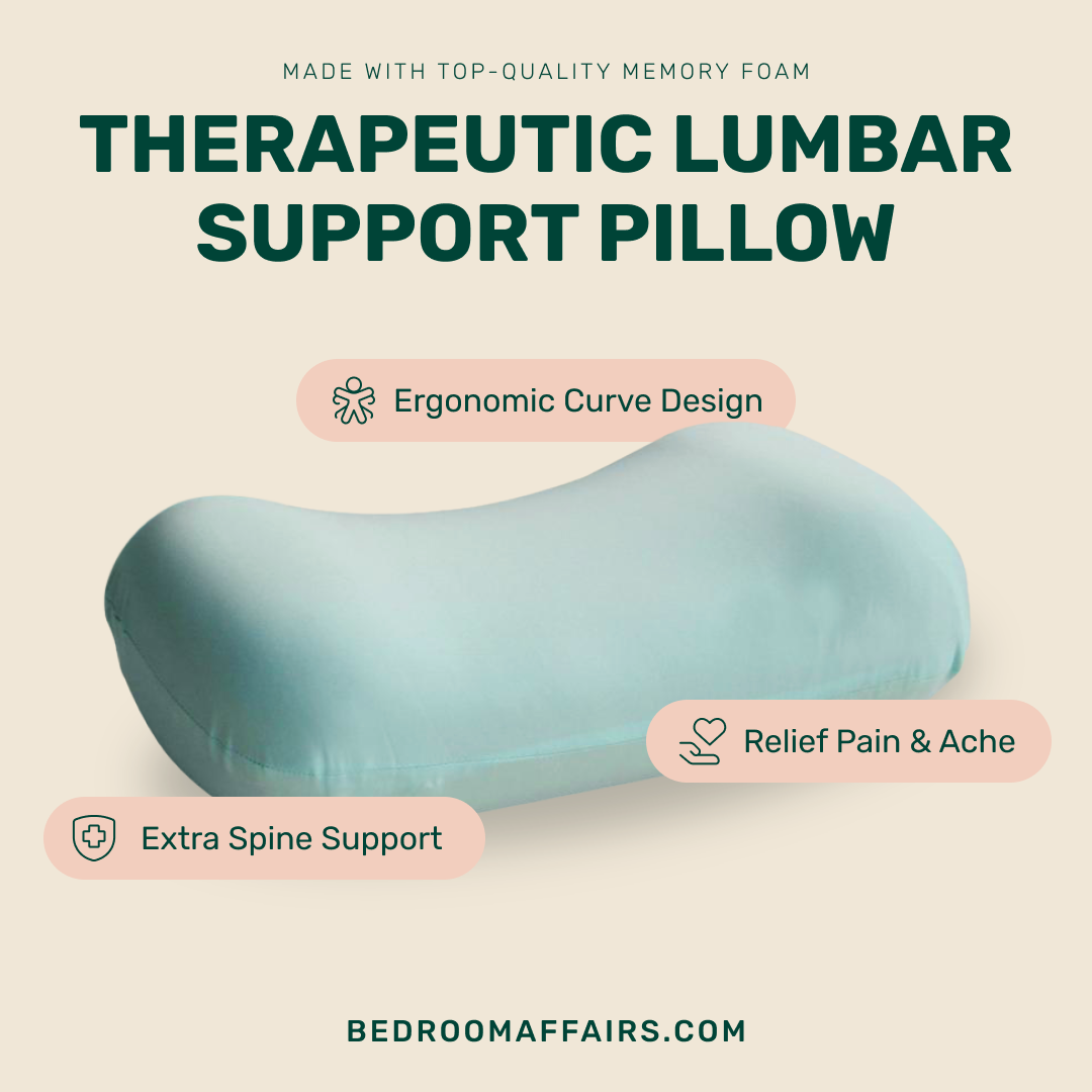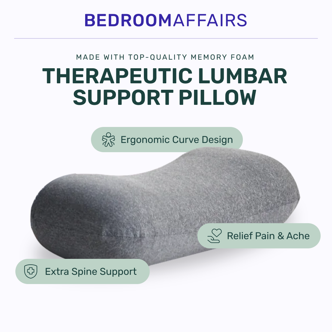 This memory foam pillow features lumbar support,specially designated to mould the contours of our lower back. Perfect for back pain relief.