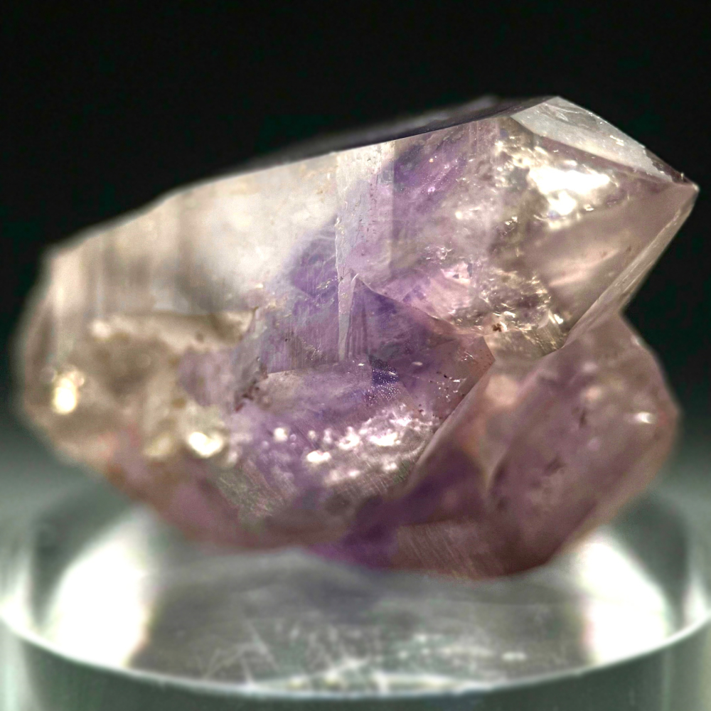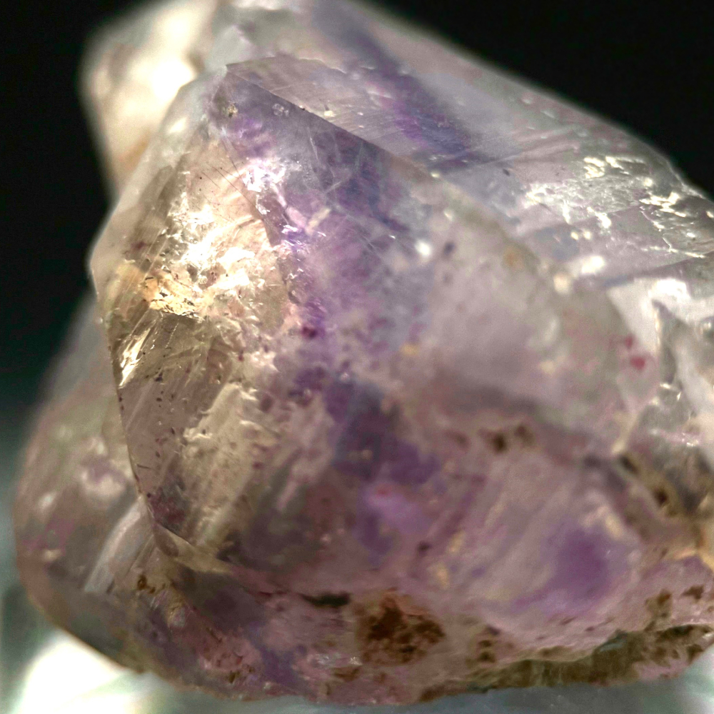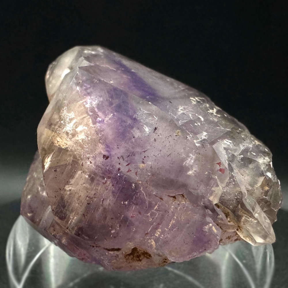 Description: Unsurprisingly, this beautiful phantom cathedral amethyst with hematite inclusions comes from the famous Goboboseb Mountains, Namibia.