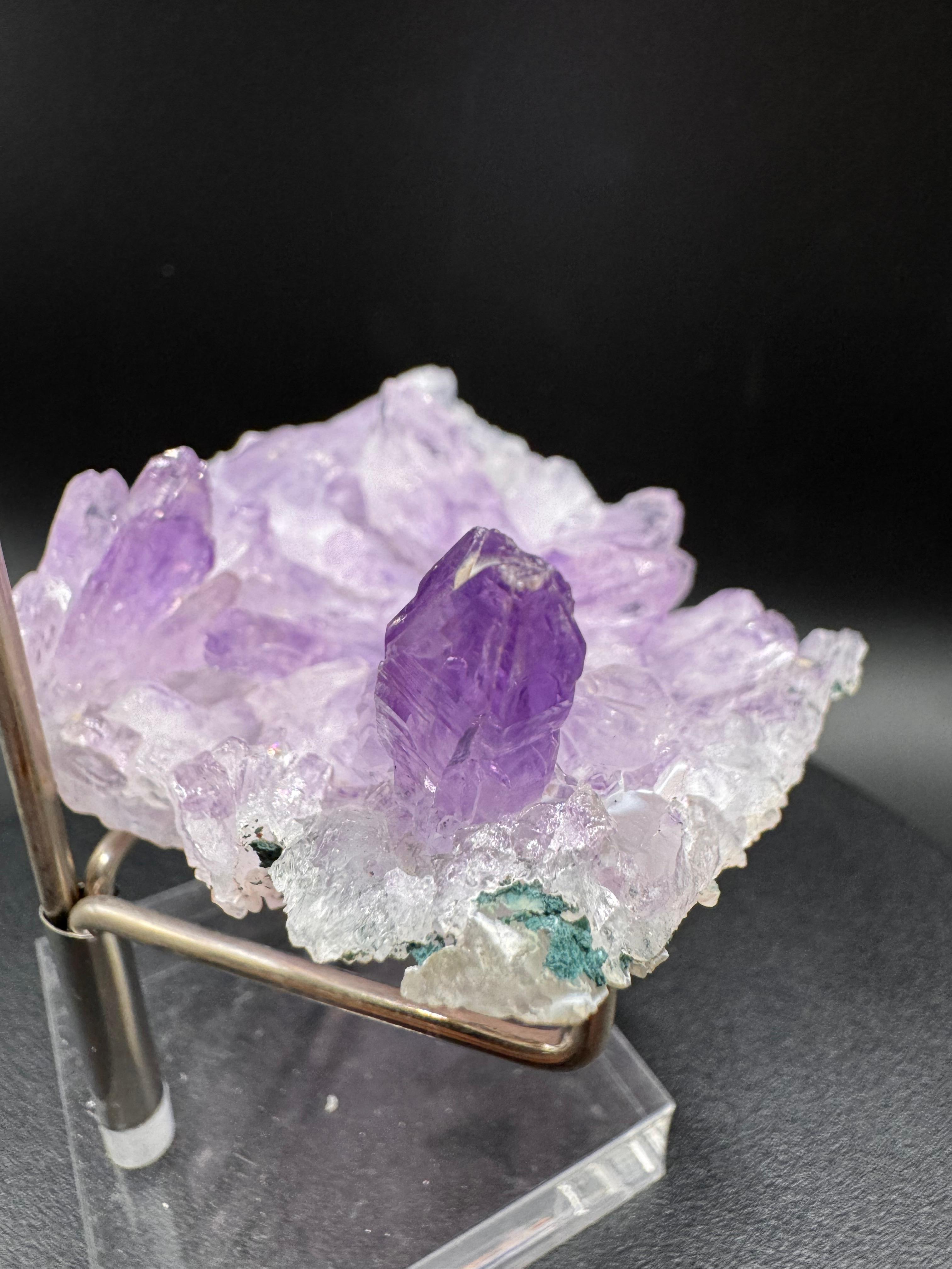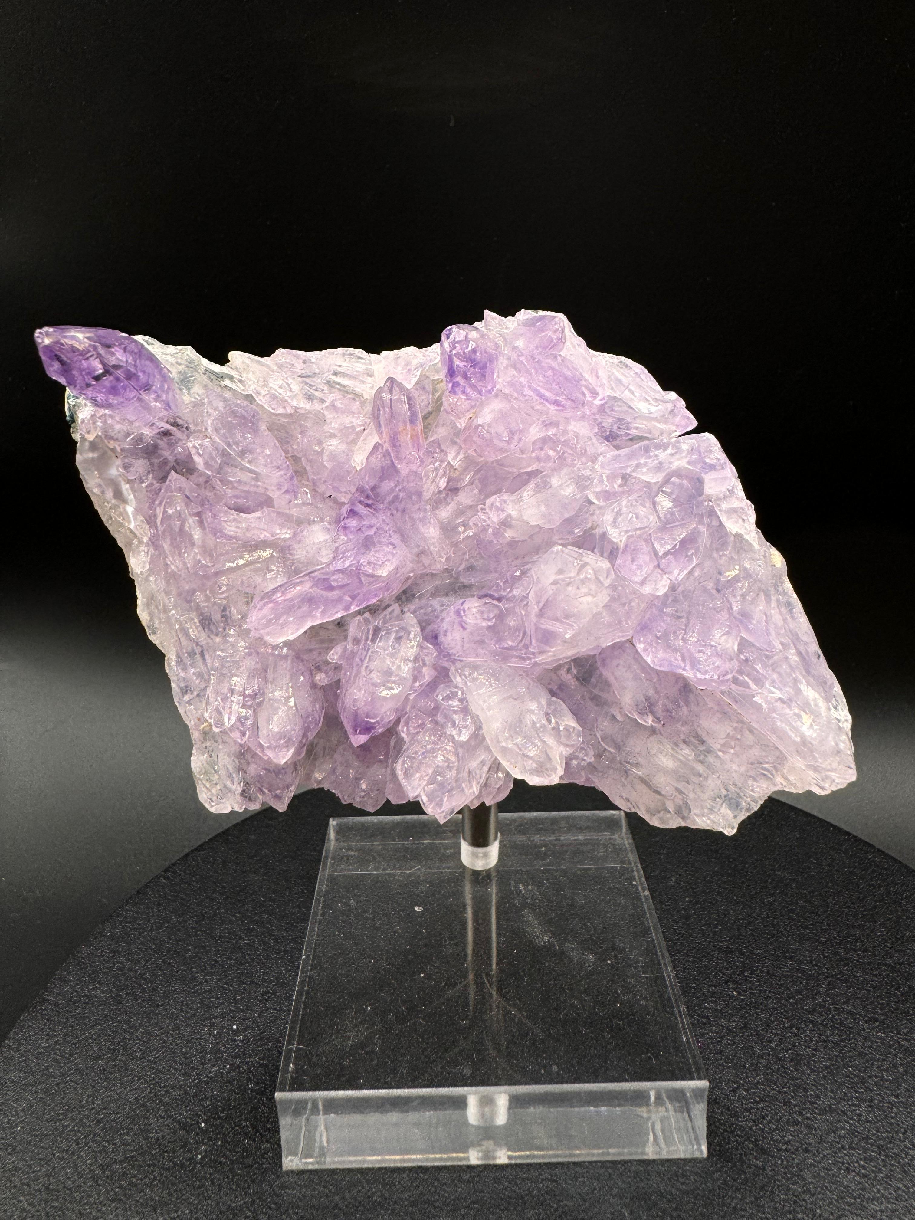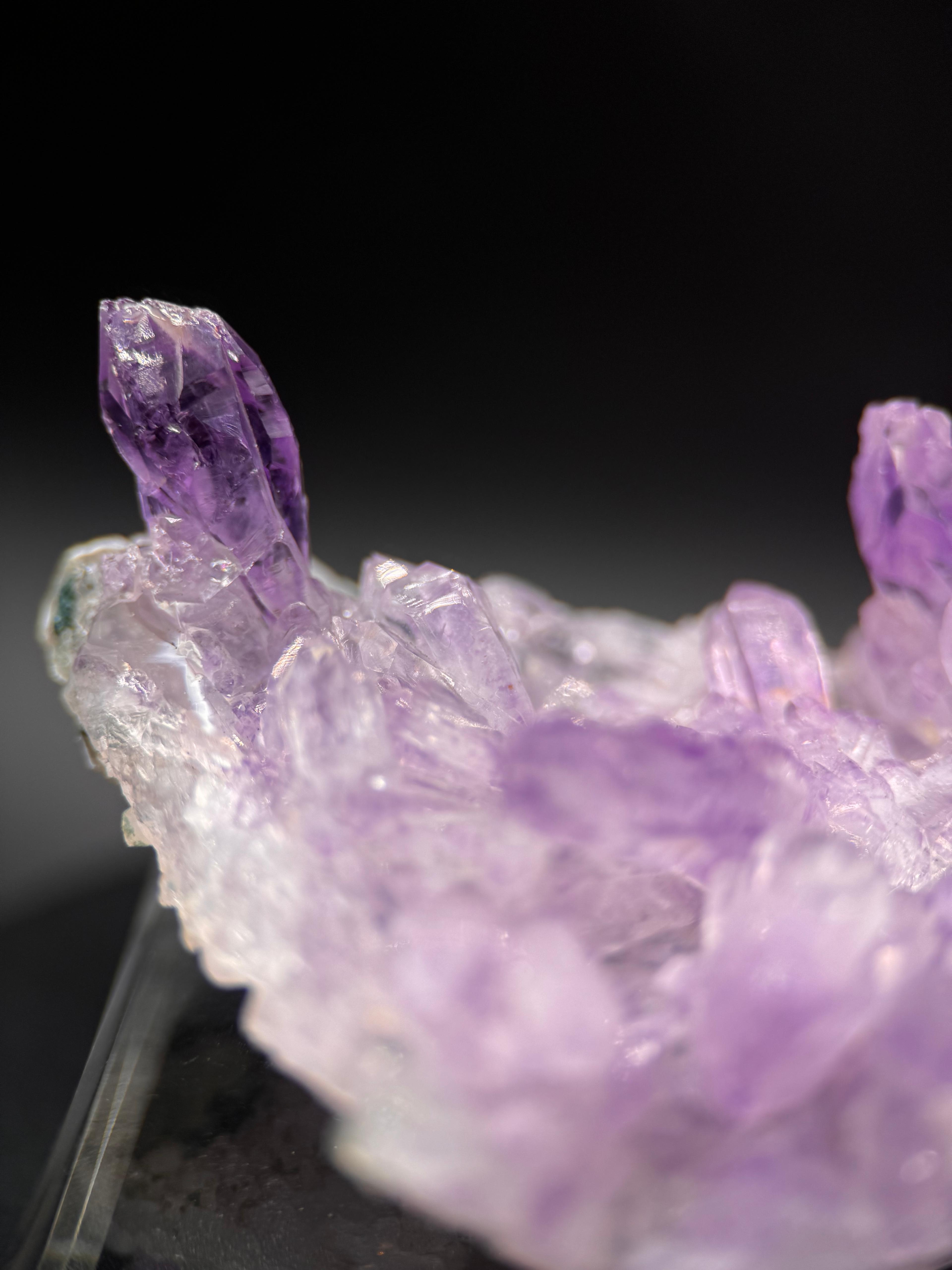 Description: Cluster of lustrous and glassy Amethyst up to 20mm with Quartz from Iraí, Brazil.