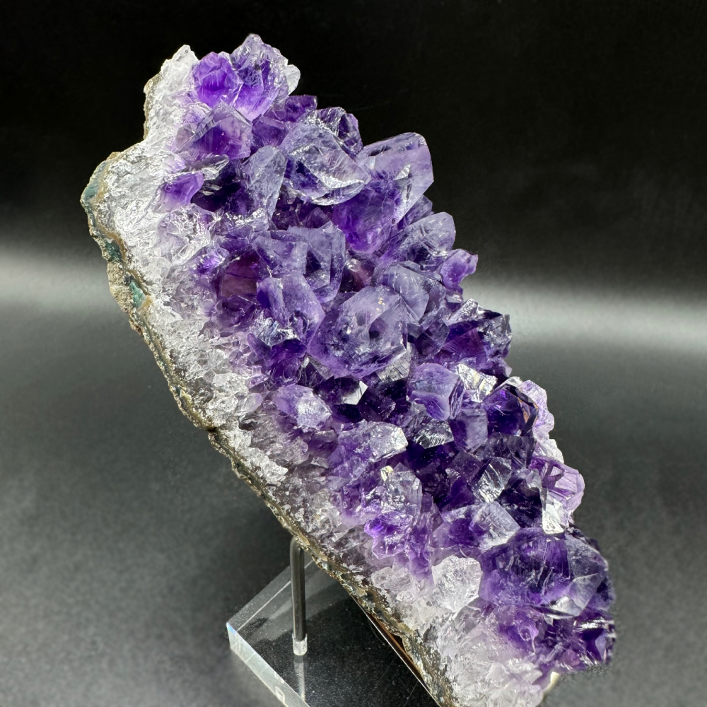 Amethyst is often associated with metaphorical properties such as spirituality, peace, clarity of mind, and protection against negative energies. It is believed to promote emotional balance, intuition, and inner strength, making it popular in meditation practices and spiritual rituals. The stone is also thought to help with overcoming addictions and fostering a sense of tranquillity.