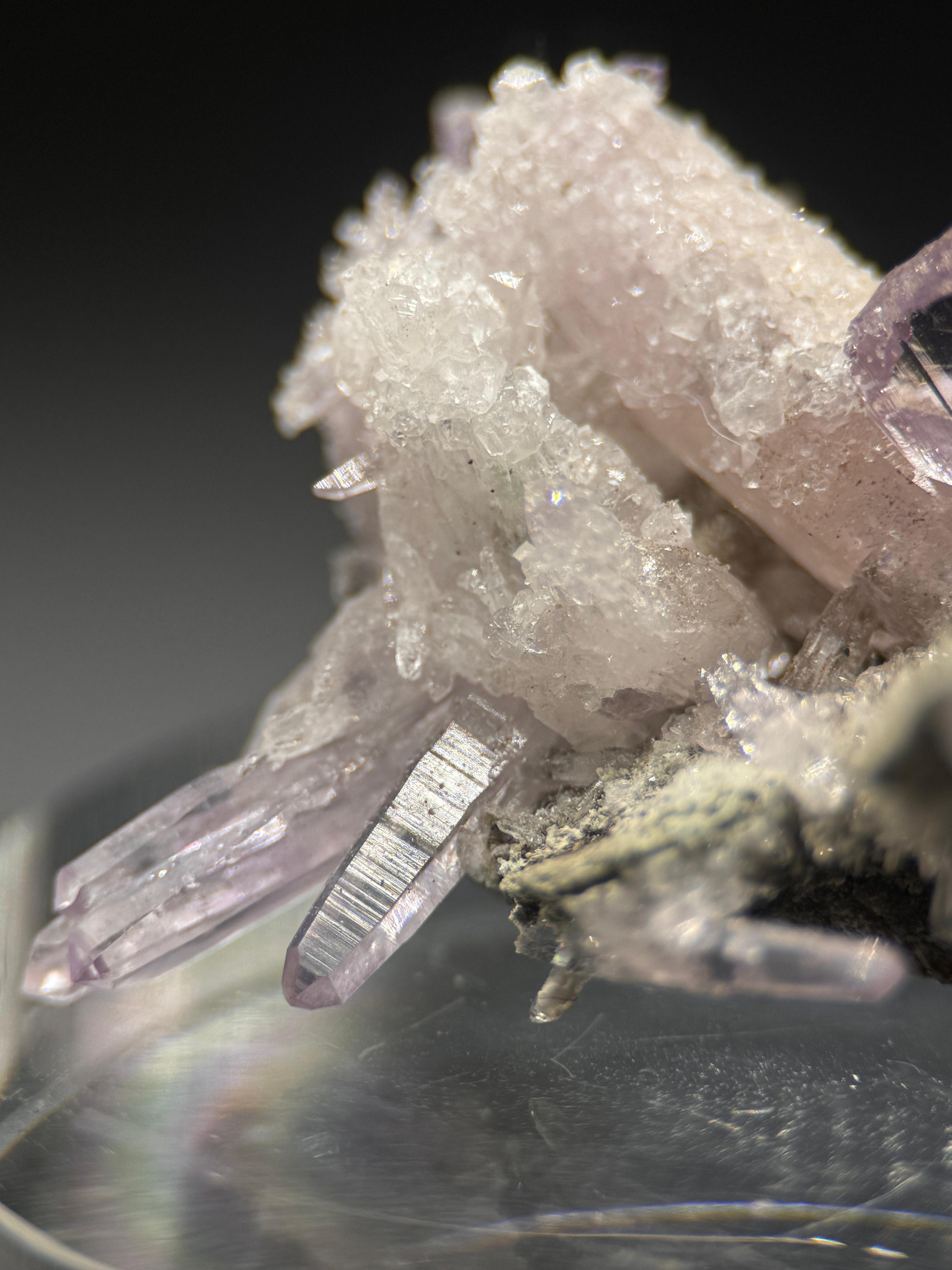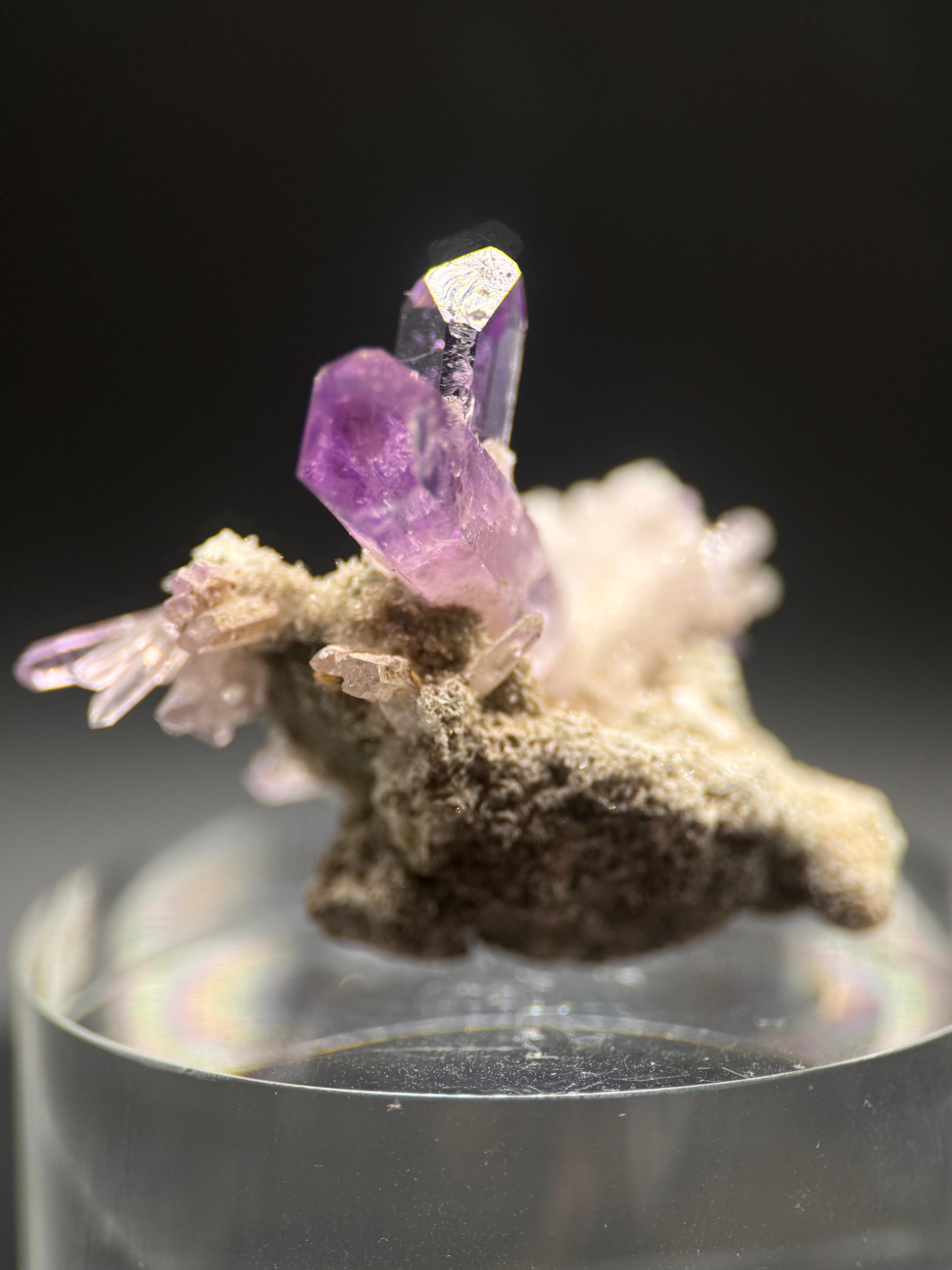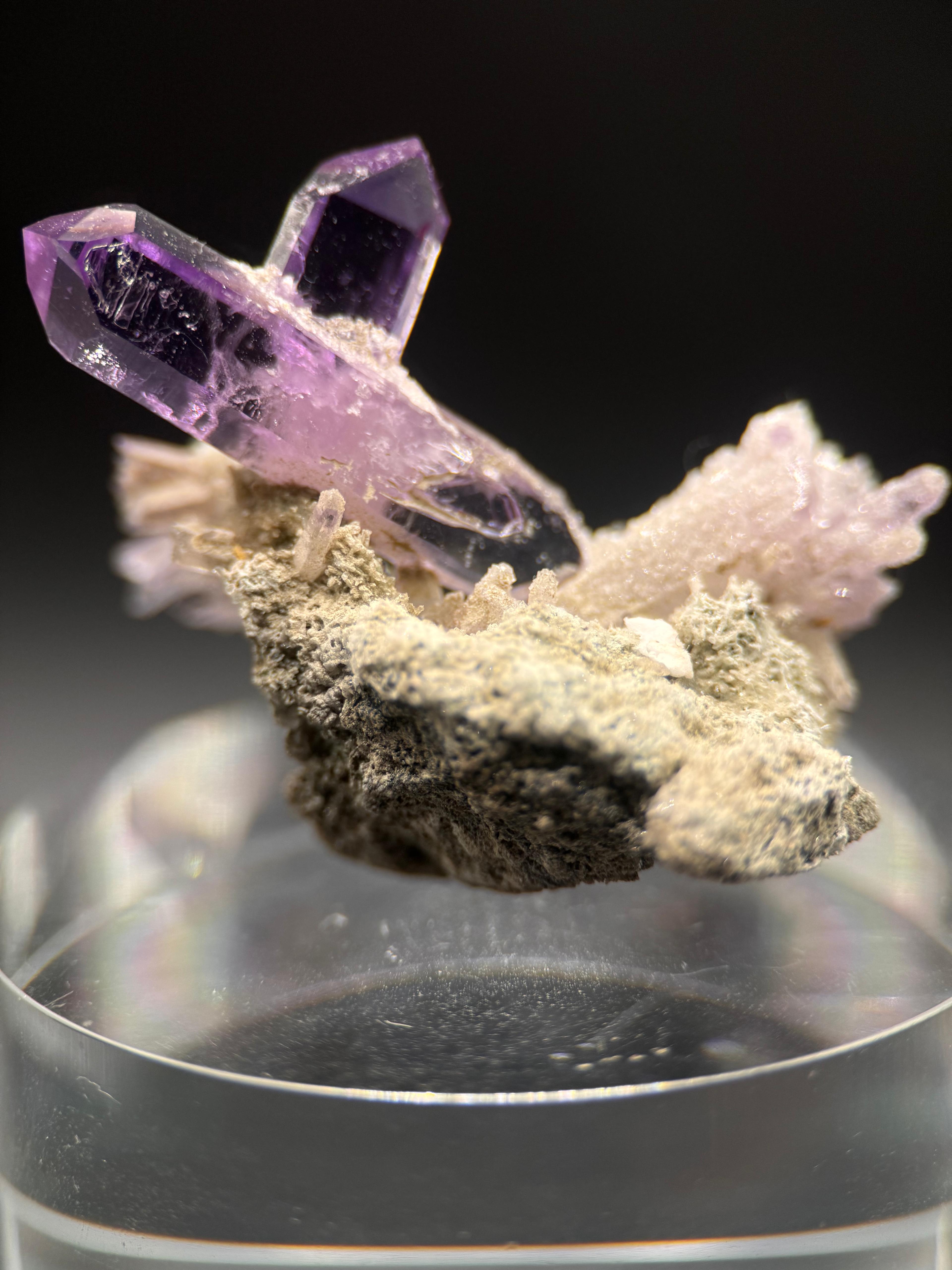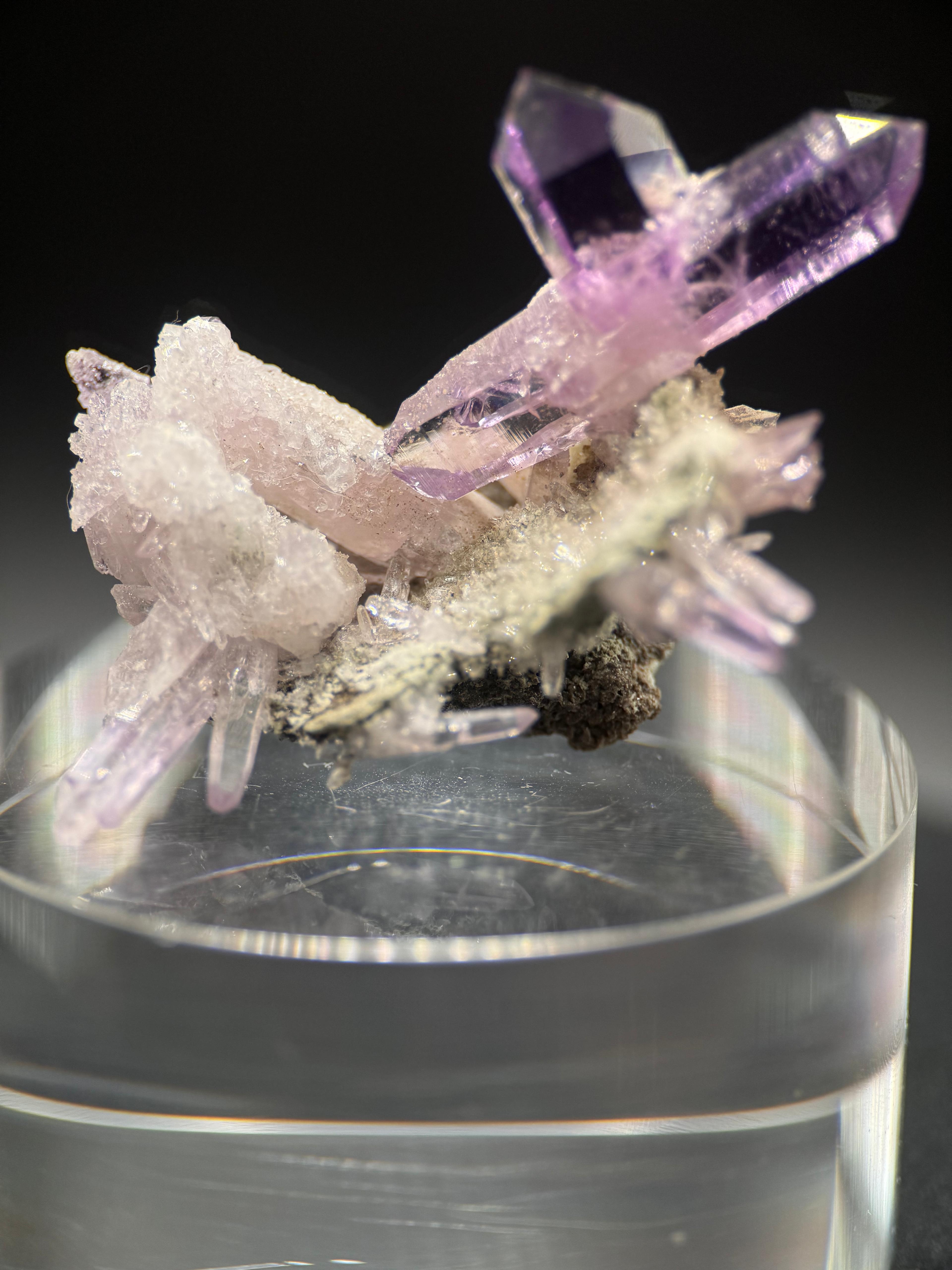 Description: When I hear ‘Vera Cruz Amethyst’, it’s almost intuitive that I will be seeing some pretty, awesome material! Vera Cruz Amethysts have amazing lustre and clarity. The colour ranges from light lavender to intense, deep purple. Size does not matter when it comes to the Vera Cruz Amethysts as it is not surprising to find the miniatures demanding respect with regards to price point and this is where miniatures hold their own weight. The crystals here are fantastic representation of the gemmy quality; amazing lustre and colour that these Mexican classics are loved and famous for.