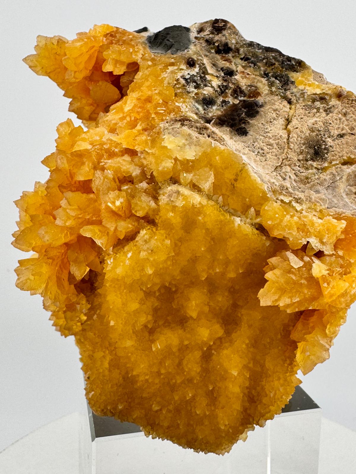 Description: A massive, beautiful and aesthetic massive specimen of yellow calcite aggregate from Elk Creek, South Dakolta , also recognised (and rightly so) as one of the classic “Top 50” American mineral locality for the high quality minerals coming out from the locality.