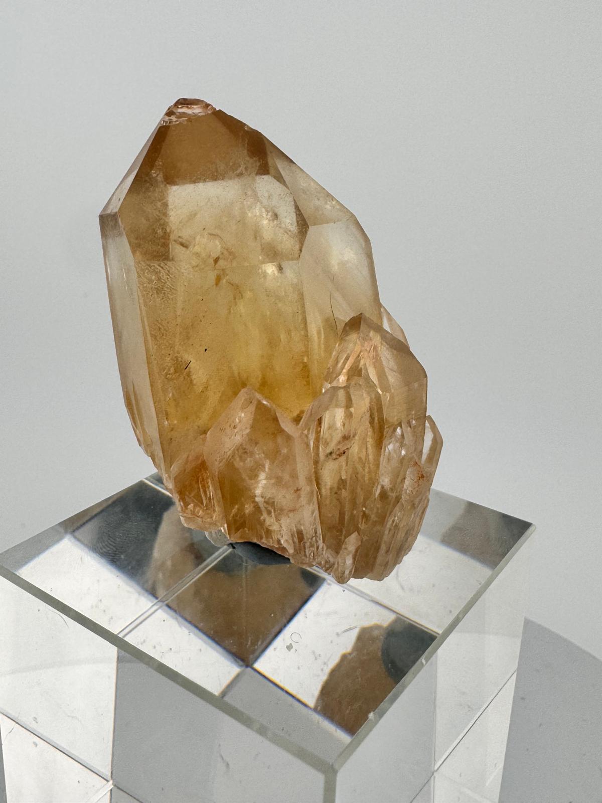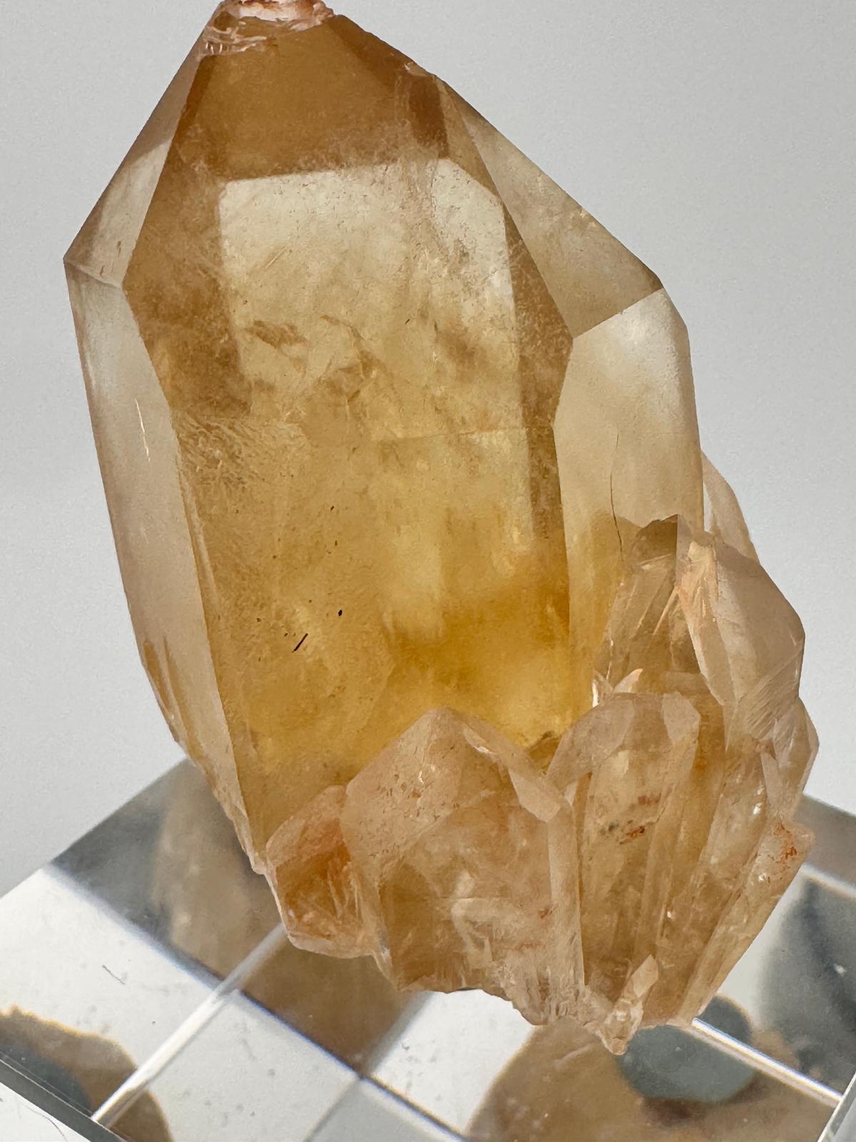 Description: Fantastic natural Citrine with cathedral termination. Other than the small ding on the tip of the Citrine, the translucency and beautiful soft orange hues more than make up for it.