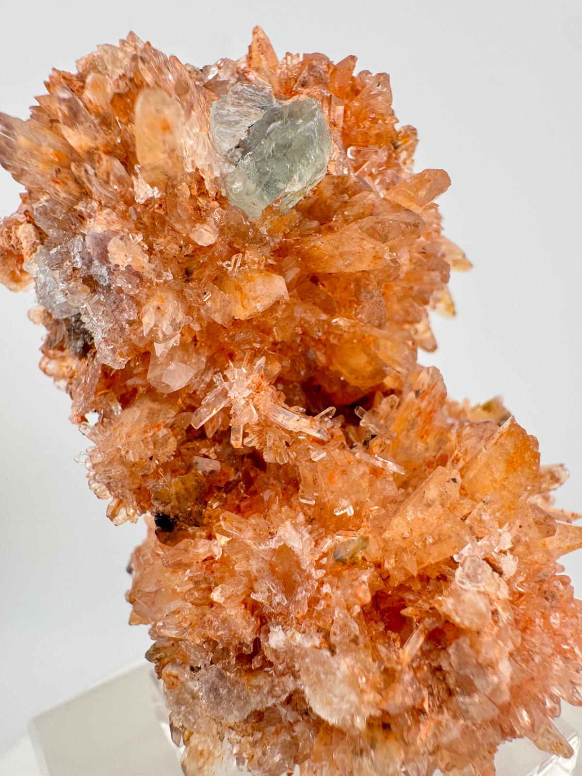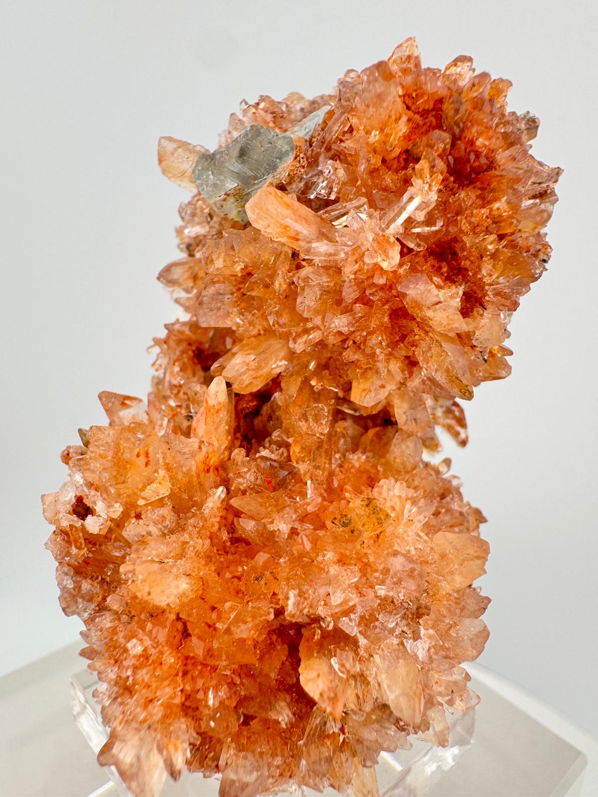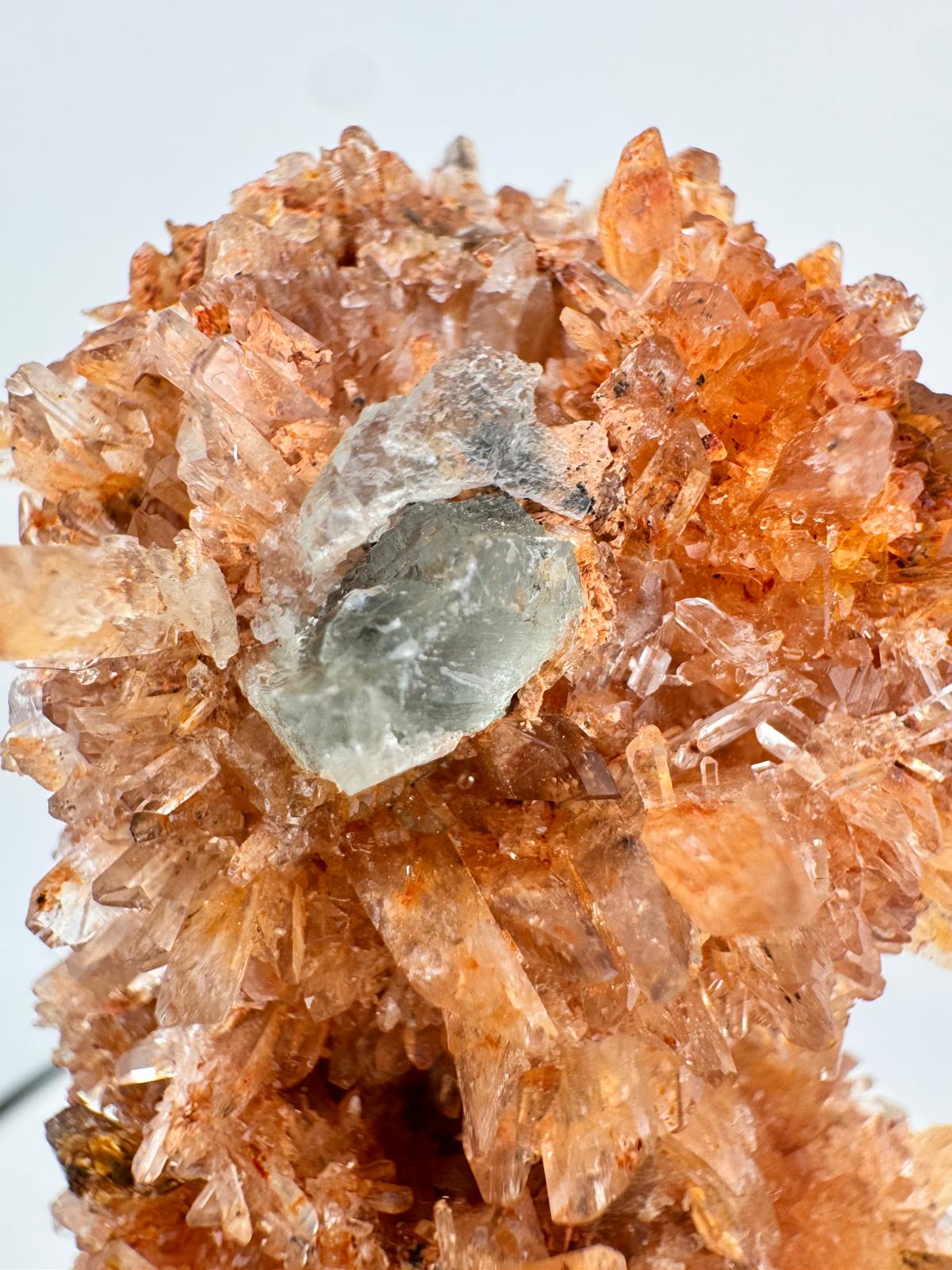 Description: This specimen is a great composition of beautiful, lustre and transparent crystals and positioned at the centre of the specimen is one single fluorite that enhances the overall aesthetics of the specimen.