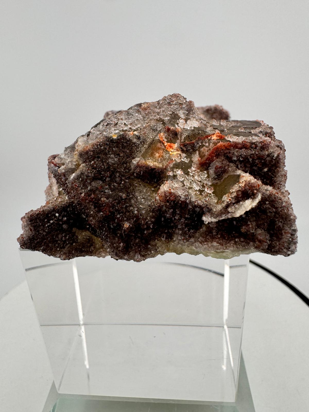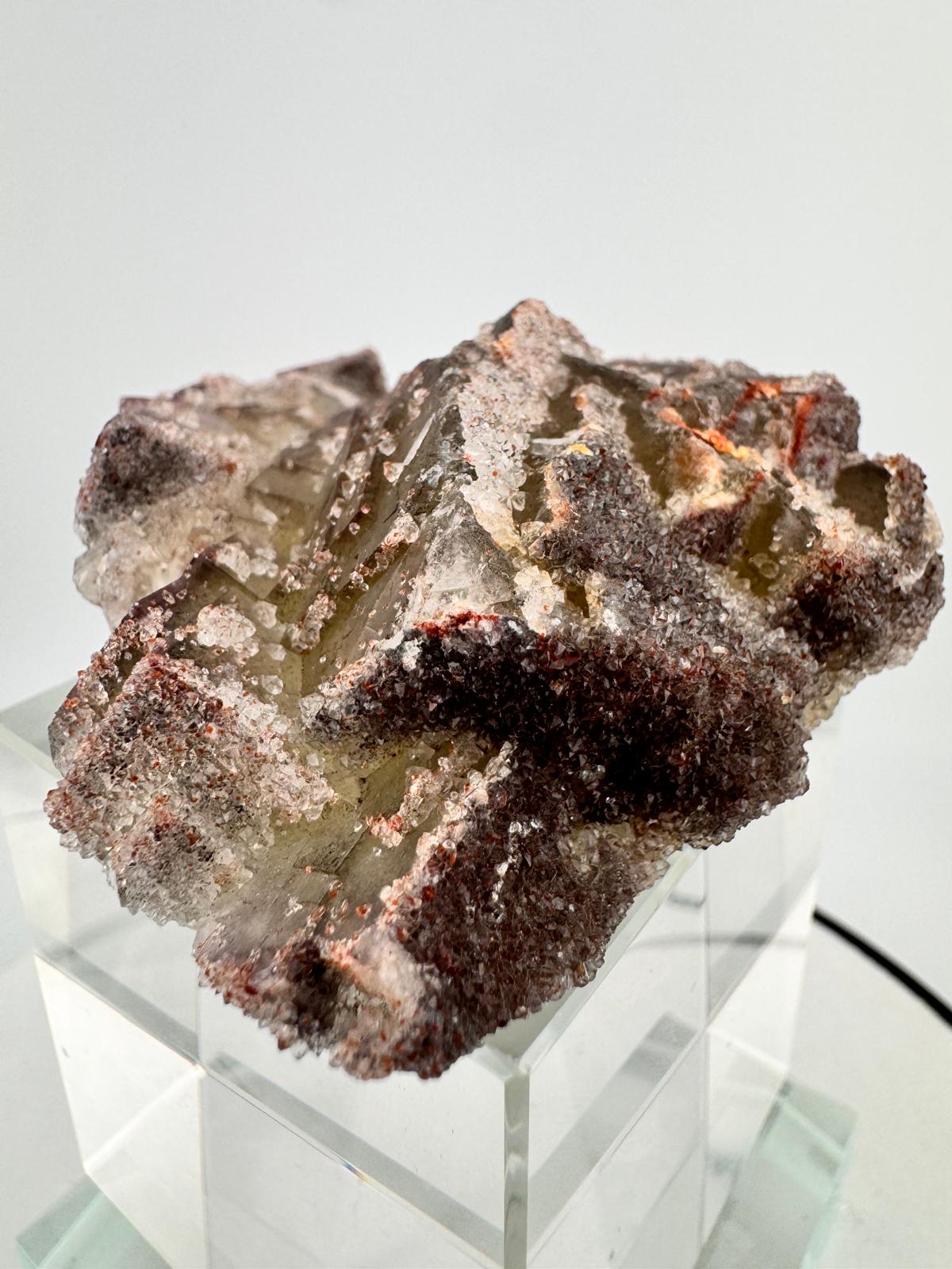 Description: This beautiful Fluorite specimen with quartz was from the now defunct Hermina mine in Germany. Once famous for its fluorites, the mine operated until 1987 when nearing exhaustion, it was finally closed. This specimen is well-preserved as it still has its original structure and lustre. It is also also partially dusted with hematoid micro-quartz.