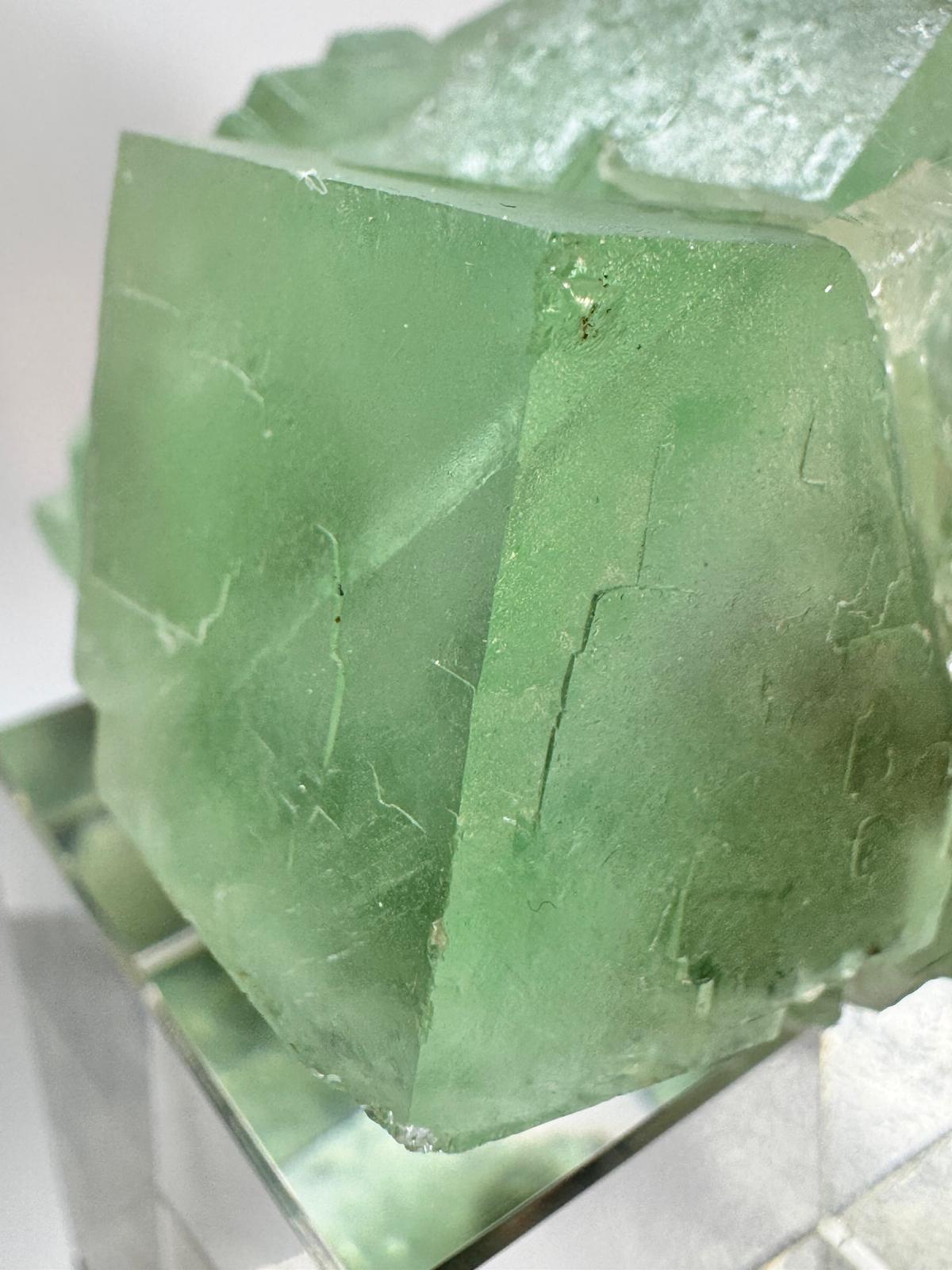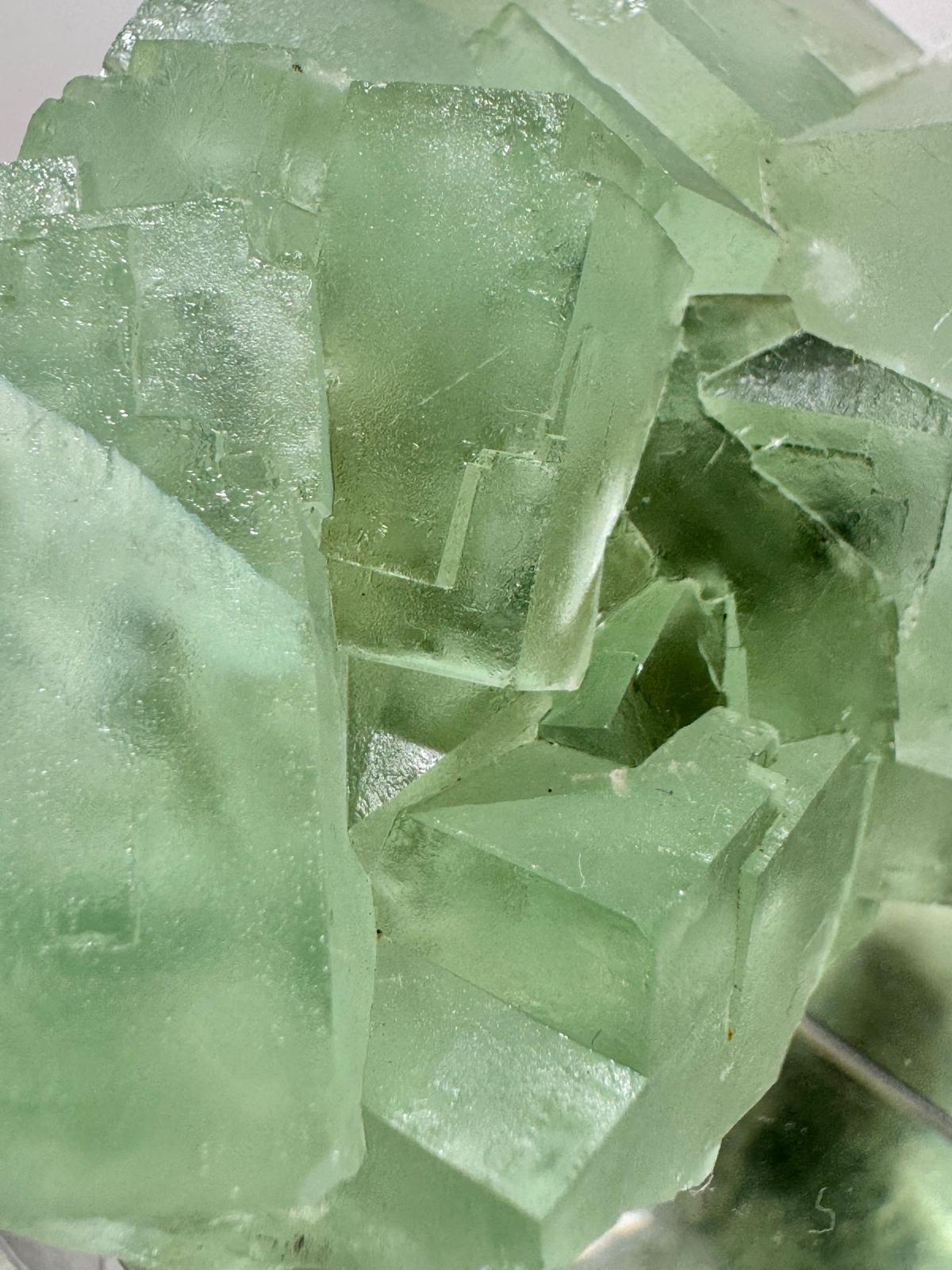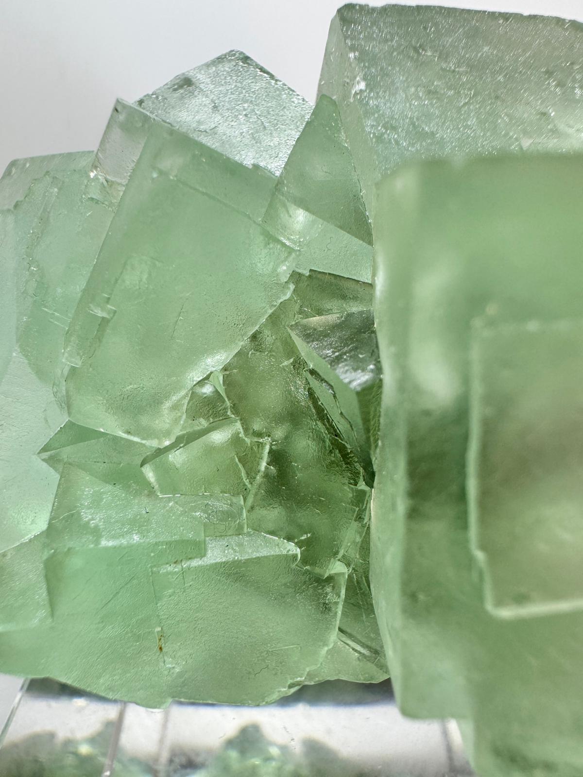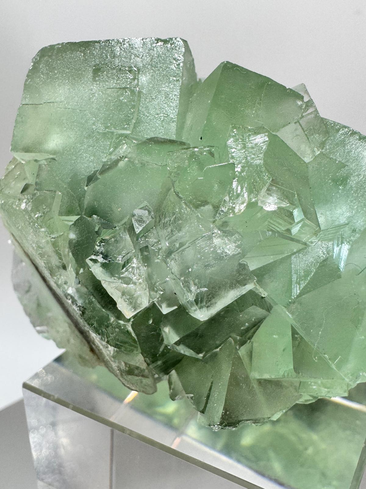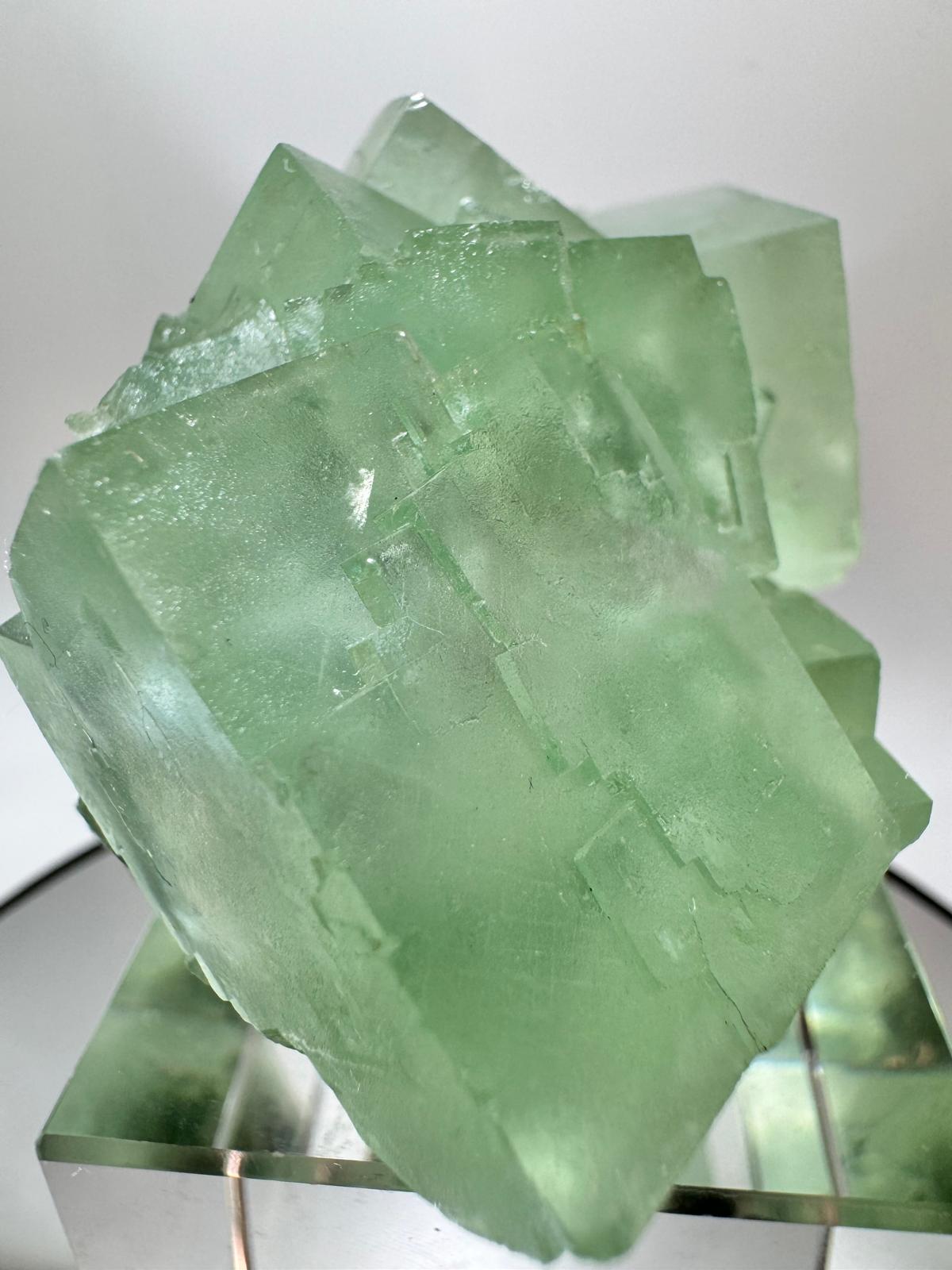 Description: Beautiful cluster of well-developed, sea-green fluoride cubes that are also translucent. This specimen was collected from Xianghuapu Mine which is renowned for producing certain types of fluorides including lustrous light-green fluorites