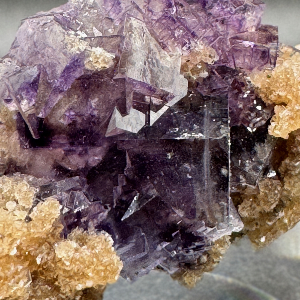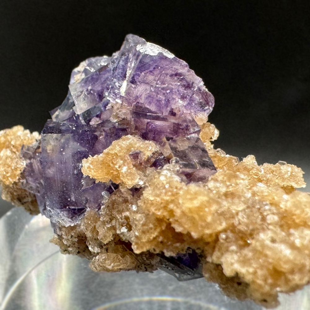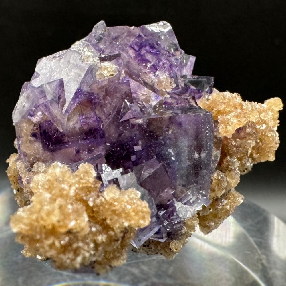 Description: Cluster of lustrous; glassy purple Fluorite crystals from Yaogangxian, famous for producing some of the world's finest fluorite specimens.