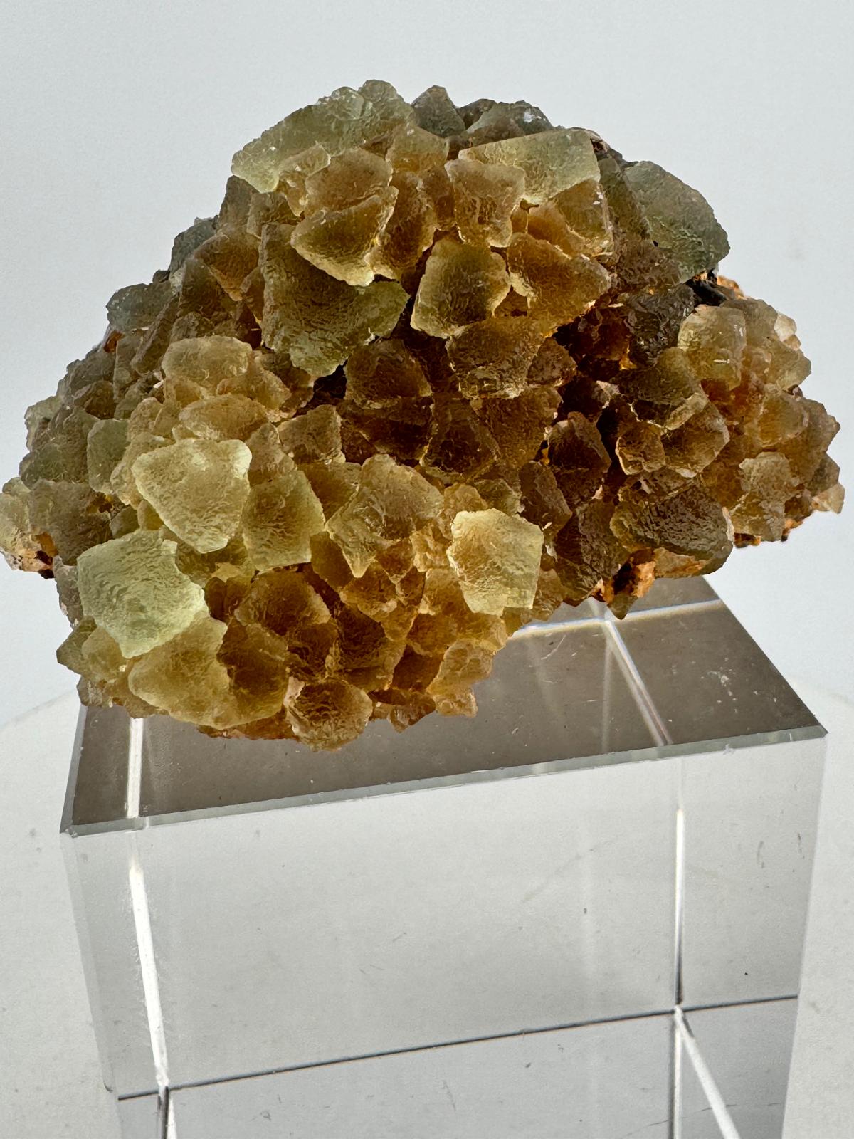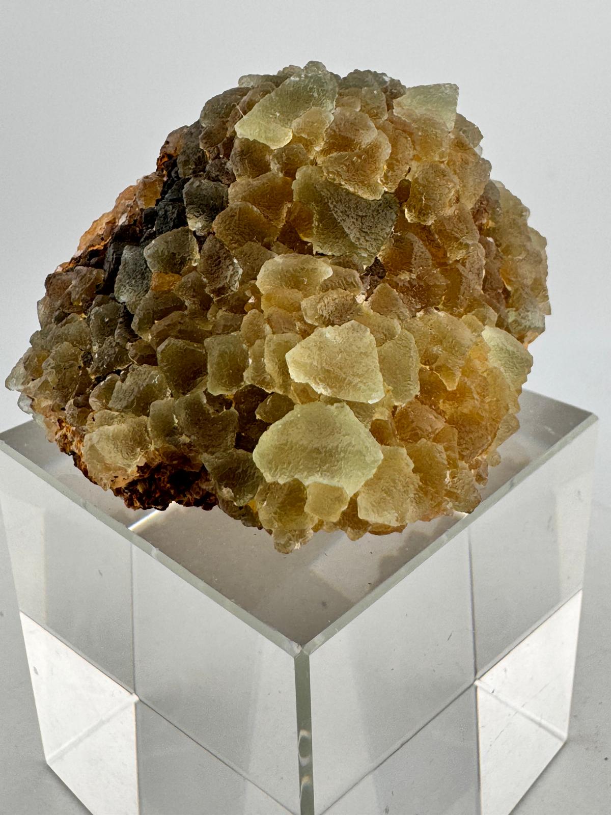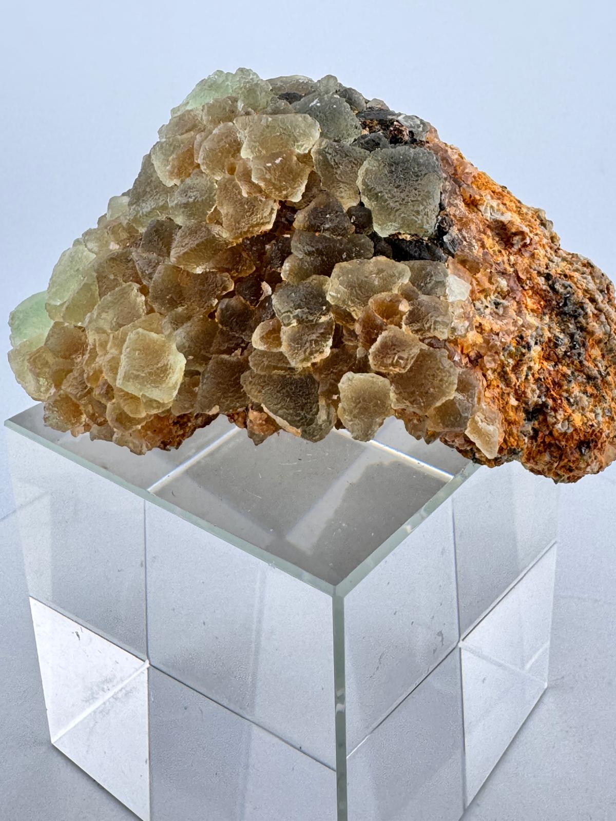 Description: Fluorite is commonly distributed in countries such as South Africa, United Kingdom; Mongolia, Spain alongside with China and Mexico that are reportedly one of the biggest producers of Fluorite. In Bulgaria, fluorite is not so commonly distributed as in China or the United Kingdom and is not widely known to be a significant locality for Fluorite deposits and they can be found only in a few locations. This particular specimen is from a lesser known location, Chereshkite ore occurrence, located between two small villages – Dolno Chereshkite and Gorno Che reshkite, in the Central Rhodopes. Not surprising, Pyrite and Galena are more commonly found in the location which makes this beautiful specimen of lustre and translucent green; honey-brown fluorite crystals as octahedrons. The location is no longer known to be productive which makes the quality of the Fluorite specimen excellent in its class since it is expected that there will won't be any new material coming out from this location.