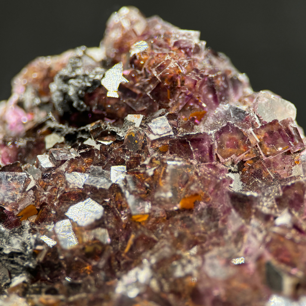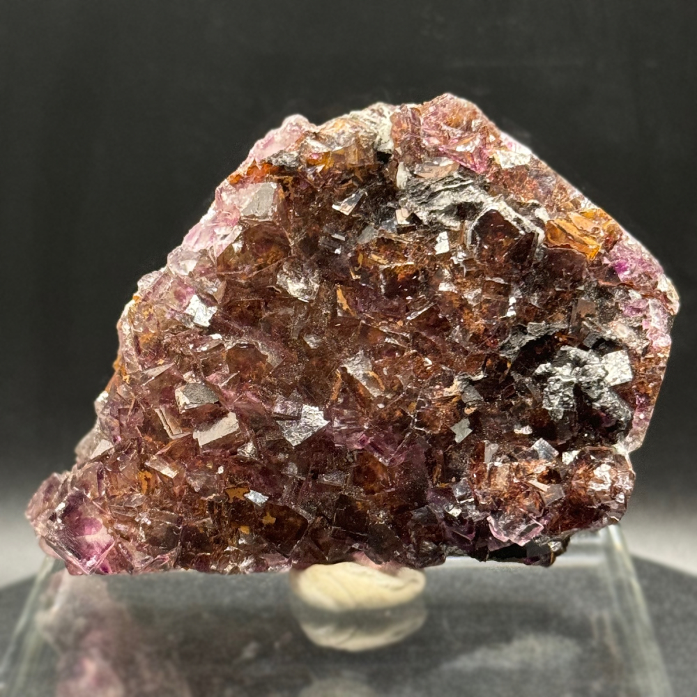 Description: A must for fluorite lovers. This is a beautiful cluster of violet-zoning deep orange fluorite crystals from the Okorusu Mine (Namibia), famous for its outstanding fluorite specimens. The mine was closed in 2014 making Okorusu fluorite a prized collection to any mineral collectors.