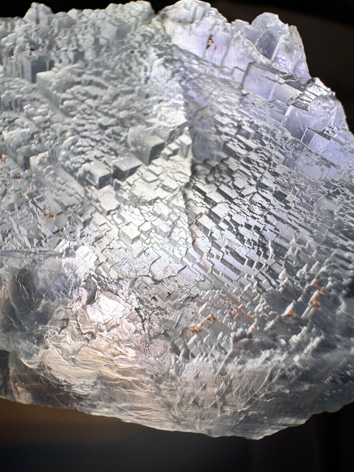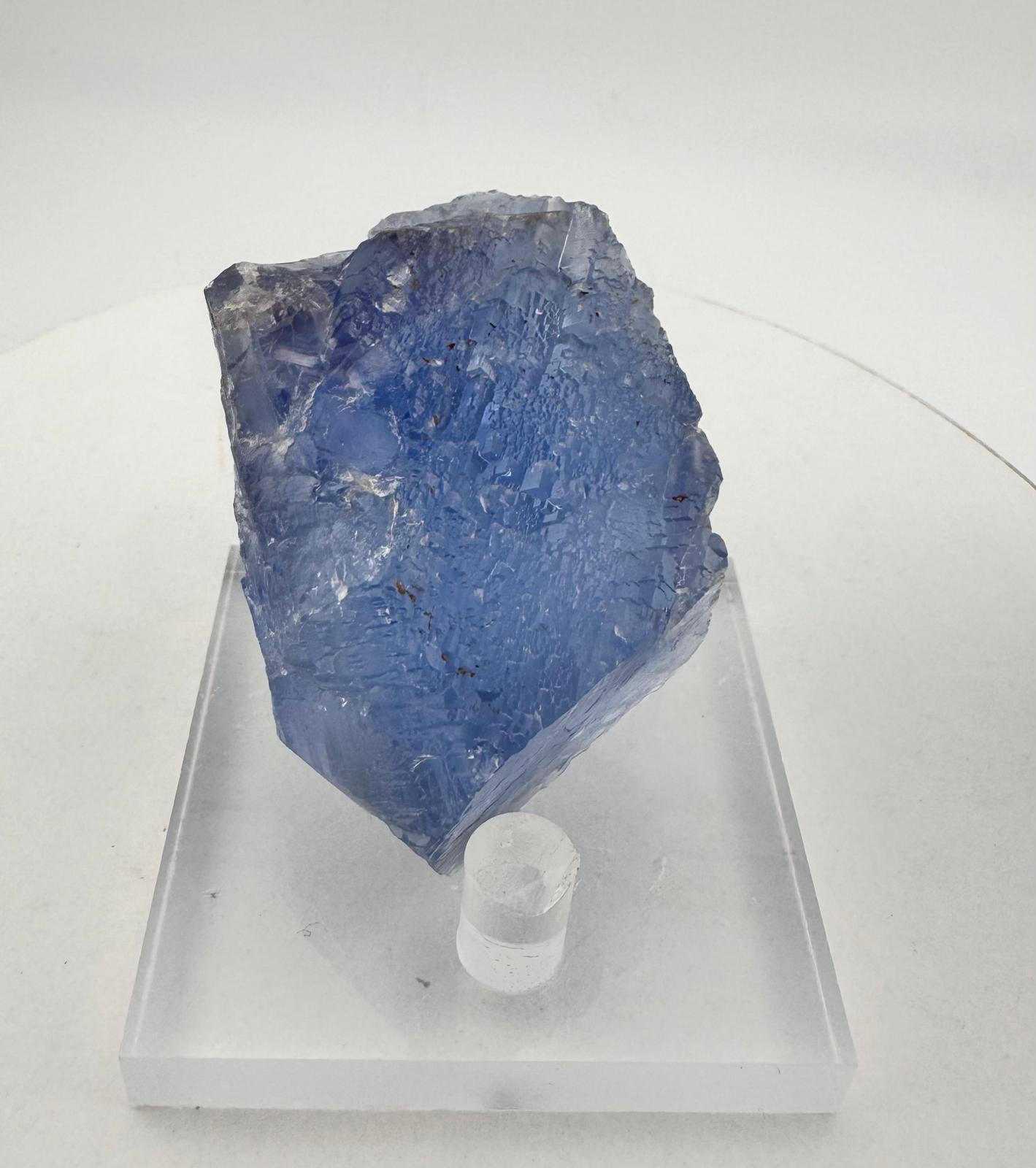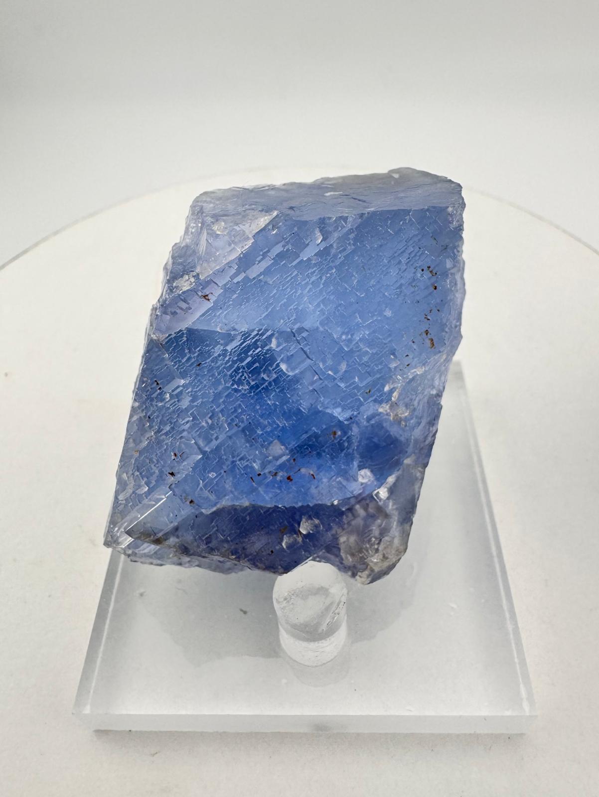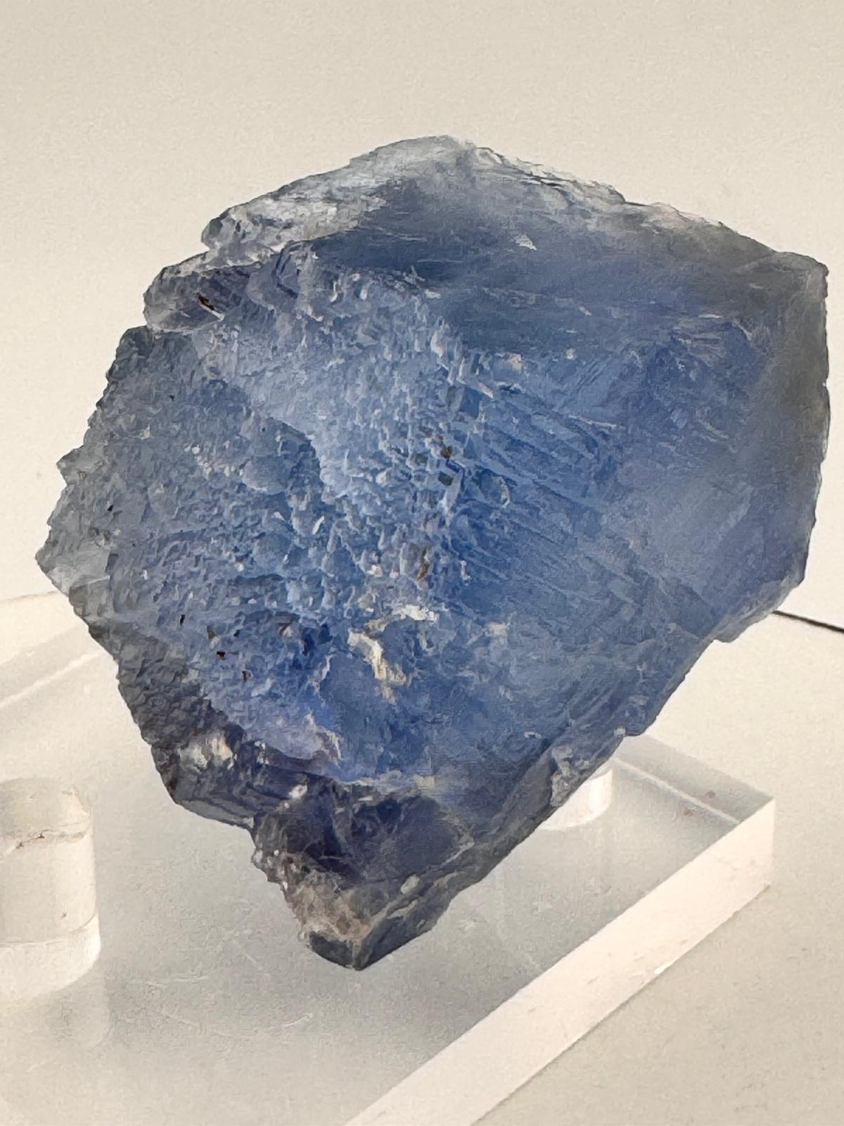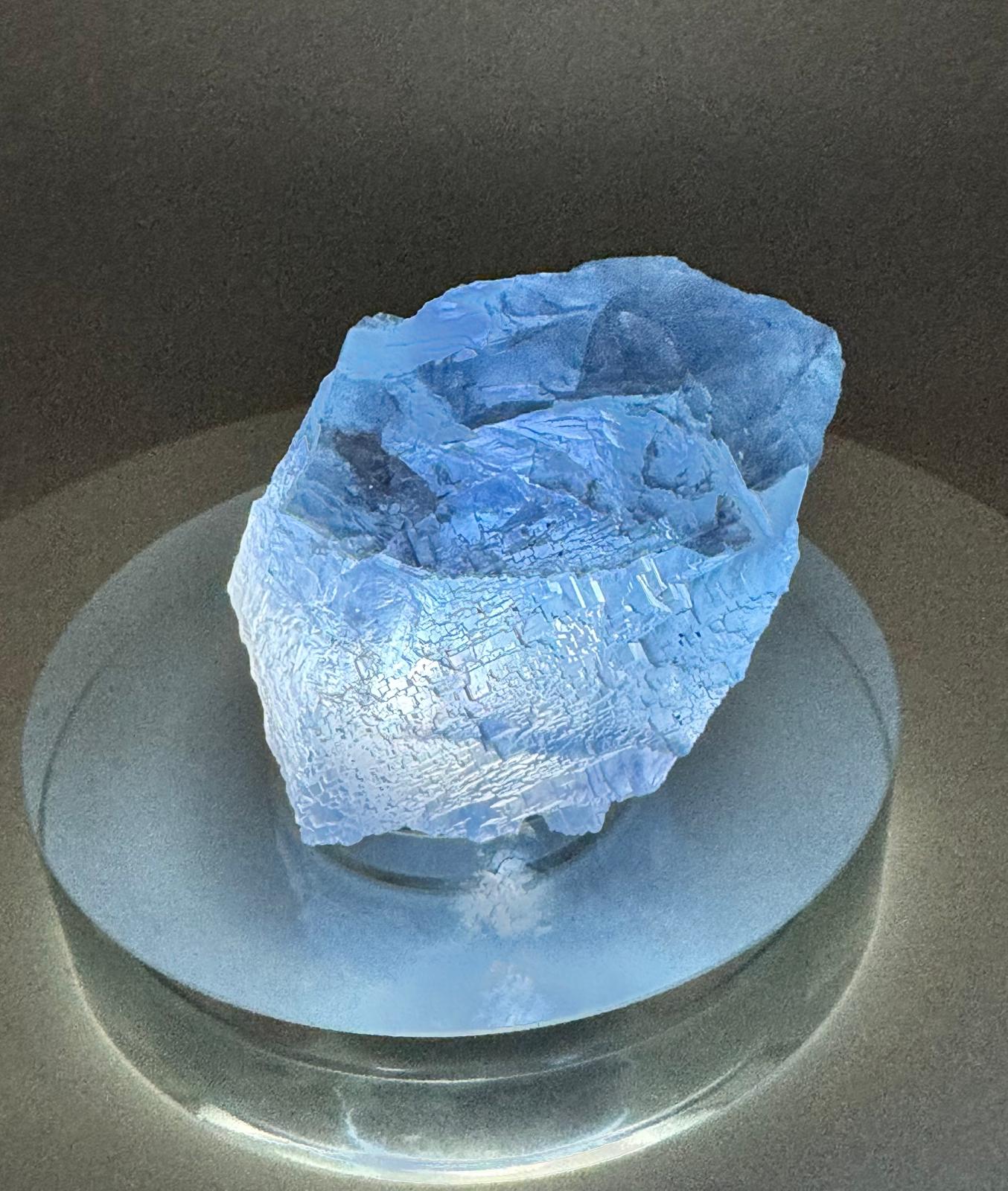 Description: A relatively new find from Caravia, Asturias. this icy blue Fluorite has naturally occurring etches that gives it character. With a distinctive , textured appearance , it gives us a window into its past with a hint on the geological forces that shaped its evolution. The Fluorite's rawness that reveals some of earth's well-kept ecological secrets is the very same one that gives this Fluorite its powerful and mesmerising beauty. When the Fluorite is placed on a lighted stand, its transformation is immediate and breath-taking. The translucency allows the light rays to traverse throughout the Fluorite and bringing it to life by highlighting every etching with such brilliance that it is almost impossible to miss any of them.