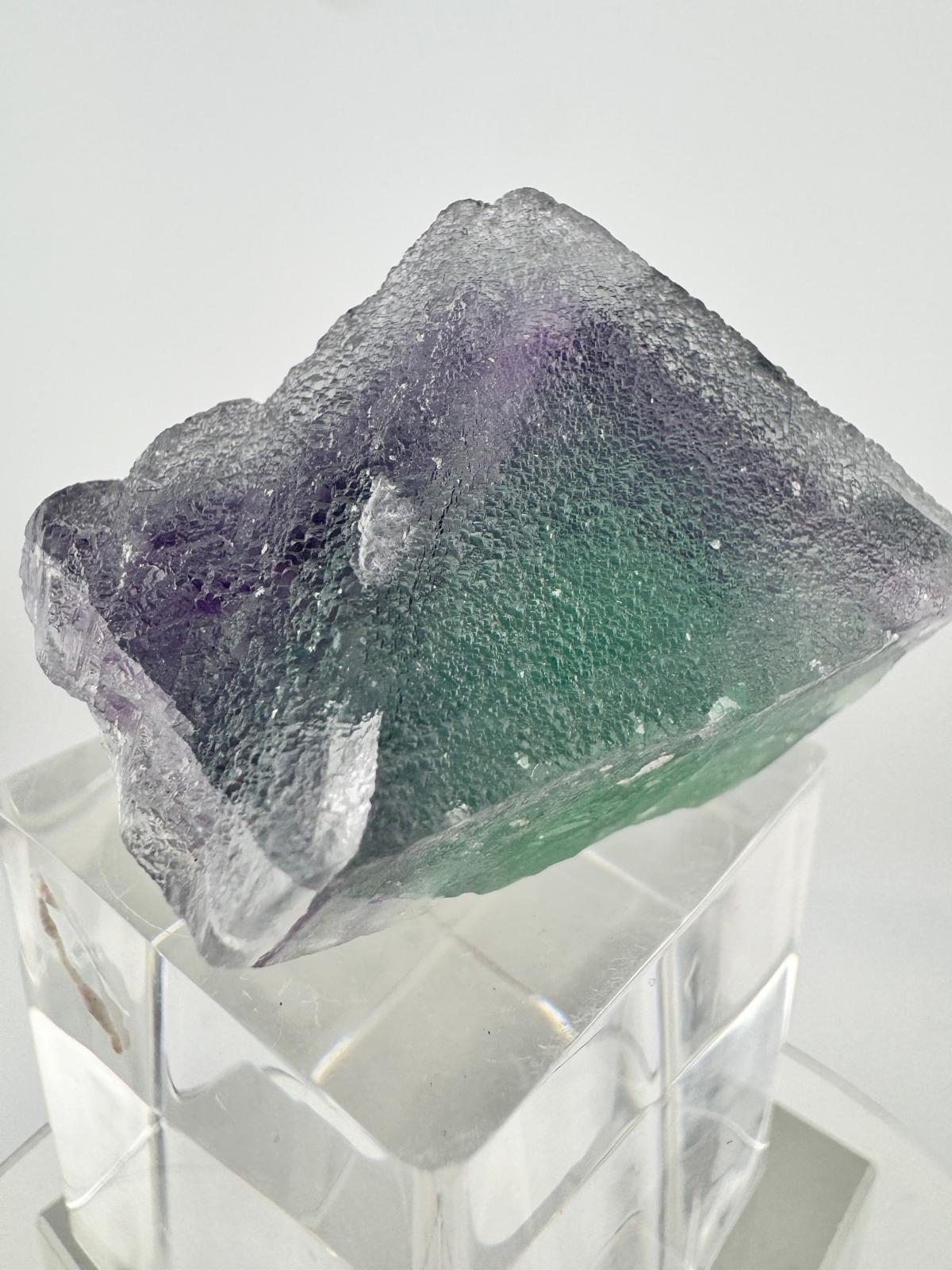 Description: As one of the world's top fluorite producers, the world has been seeing an influx of high quality material from China. The large geographical expanse of China would see different regions producing fluorites that are recognisable by the characteristics such as the pale blue-purple to dark purple cubes to several centimetres are typical of the Yaogangxian Mine. Fluorites from ZheJiang demand the same level of respect with their enchanting light to dark purple hues or green cubes with irregular dodecahedral modifications. The fluorite crystals exhibit "phantoms" which are ghost-like images of smaller crystals within the larger crystal. This effect is due to the crystal resuming its growth which at some point was interrupted and thereby creating a layering effect within the crystal. The particular specimen is typical material from ZheJiang and is highly valued by collectors for its unique and striking appearance.