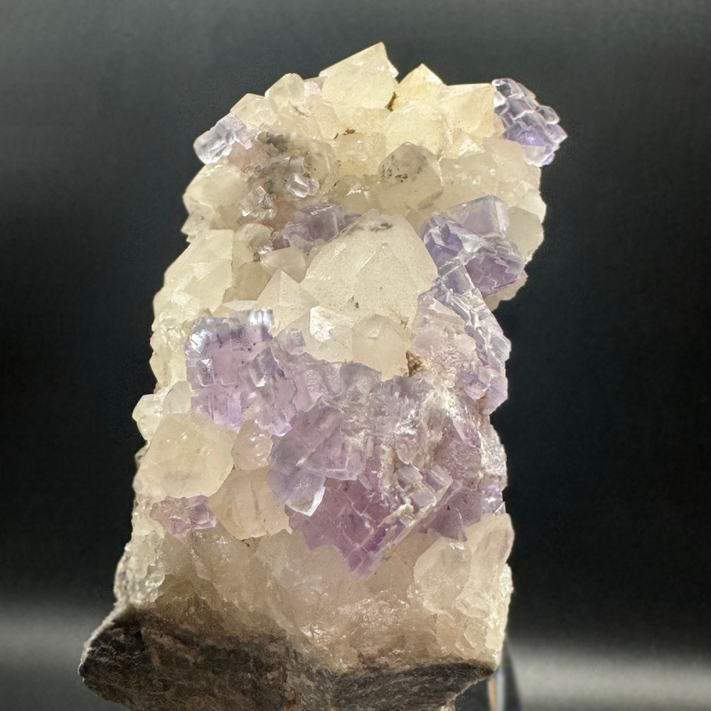 Description: From the famous Berbes mining area in Spain, this specimen exhibits well-finished quartz crystals interplaying with clusters of lilac fluorite crystals resulting in a truly beautiful, natural marvel.