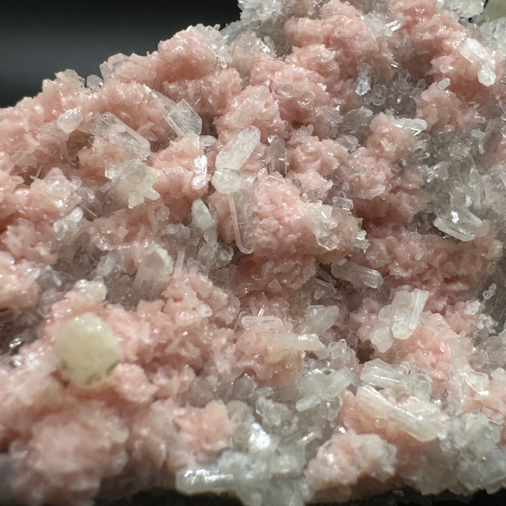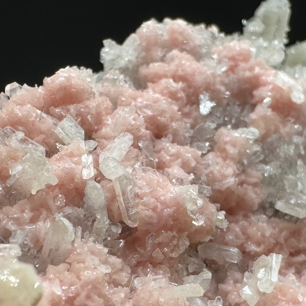 Description: A well-balanced specimen with beautiful light pink rhodochrosite interspersed with quartz and stilbite, giving it its distinct character.