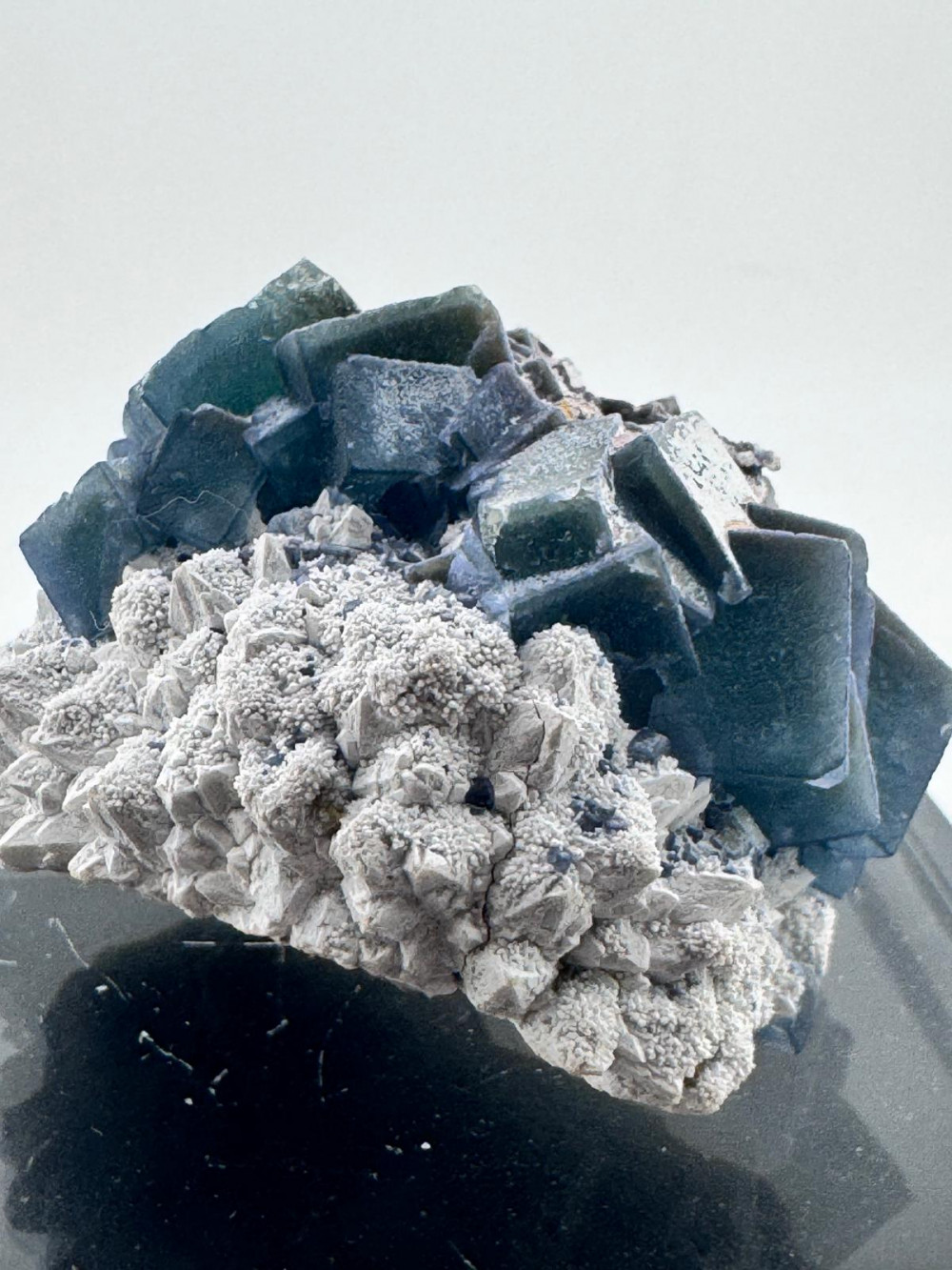 Description: Discover the breathtaking allure of this Deep Blue-Green Fluorite crystal cluster elegantly perched on a pristine Snow-White Quartz base, sourced exclusively from the famous Huanggang Mine in Inner Mongolia, China. Measuring 8 cm by 6 cm and weighing 171g, this specimen is a true masterpiece — a collector’s treasure that seamlessly blends striking aesthetics with geological rarity. Each fluorite crystal, perfectly formed with vivid cubic structures, radiates an intense sea-green hue with a subtle matte glow and delicate translucent zones that create mesmerizing depth and dimension. The vibrant contrast against the snowy quartzaceous backdrop delivers a stunning visual impact that commands attention and elevates any collection or décor. Ideal for enthusiasts seeking a unique mineral gem, this specimen not only embodies natural elegance but also carries the prestige of one of China’s most valued mineral sources. Don’t miss the opportunity to own this extraordinary crystal cluster — a captivating statement piece destined to inspire admiration. Add this unparalleled collector’s gem to your collection today and experience the perfect harmony of color, form, and origin.
