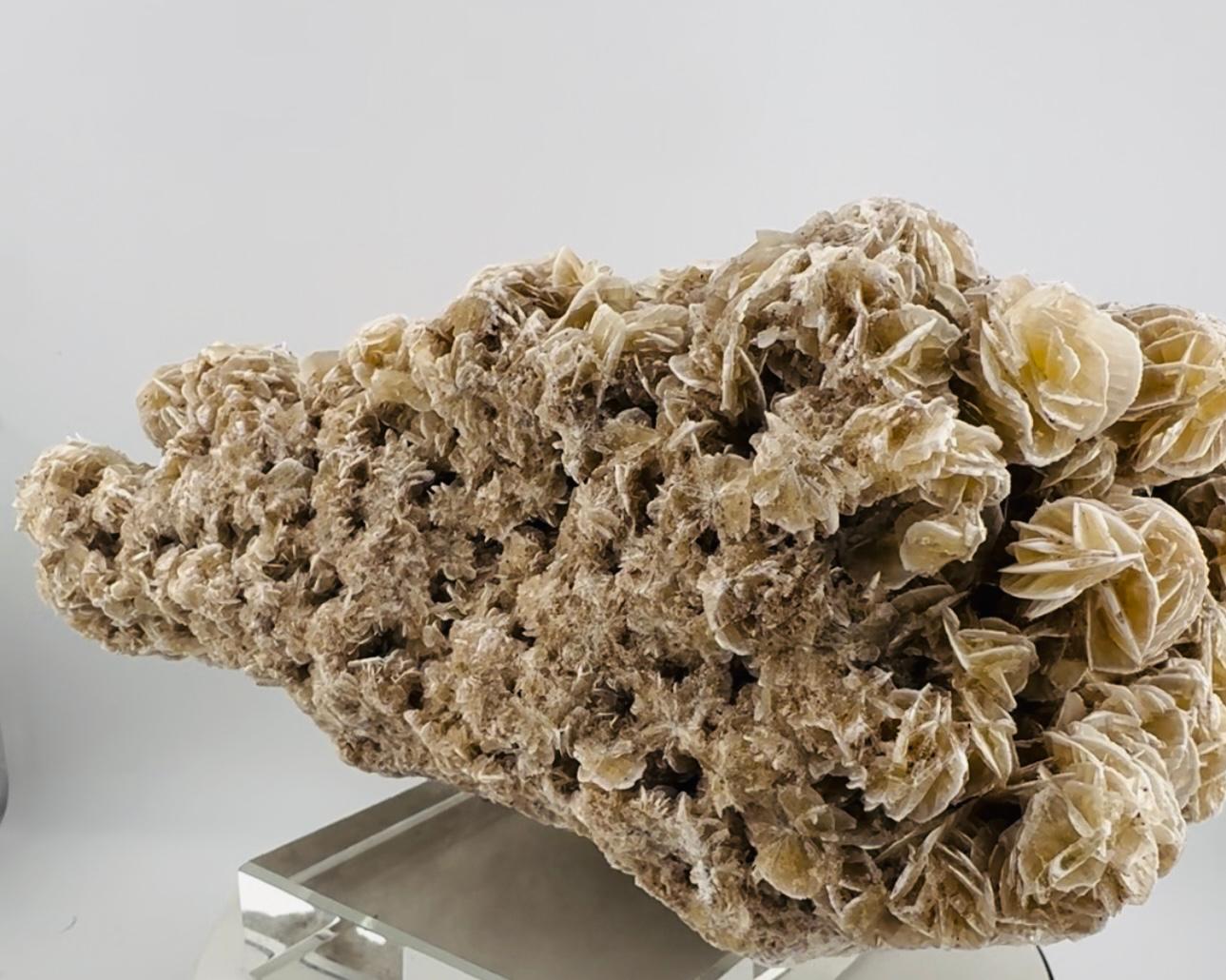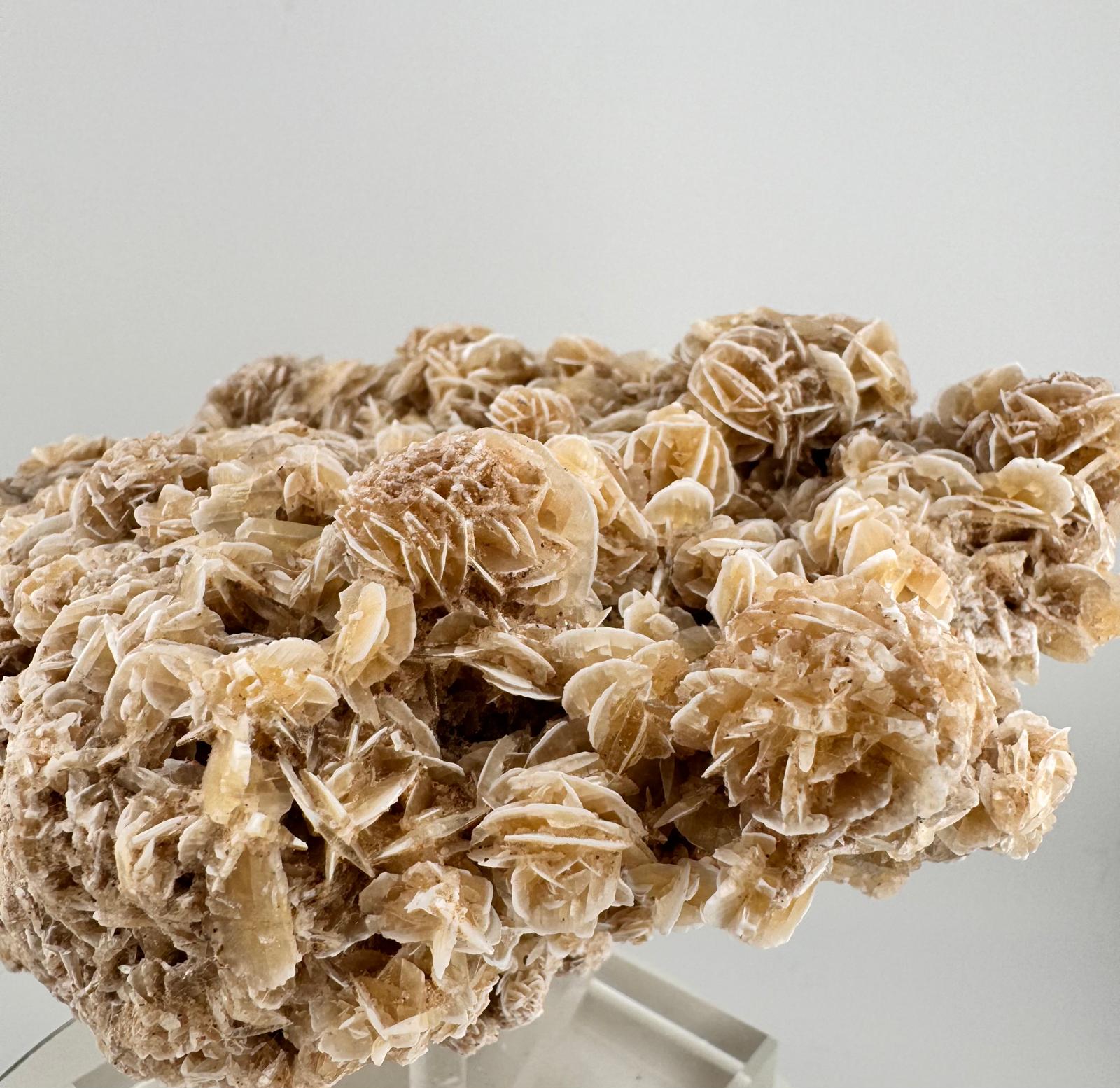 Description: Beautiful 2kg plate that is completely covered with Selenite crystals gathered in a rosette formations. As an ancient crystal, Selenite is known for its ability to cleanse and purify stagnant and negative energies from individuals; surroundings ; spaces and even other crystals. Further to this, Selenite rosette crystals are though to promote a sense of calmness and tranquillity. Having this massive plate of Selenite rosette crystals feels very much like you are staring down at a bed of beautiful, budding roses, making this a must-have as an aesthetic display in any part of your home.