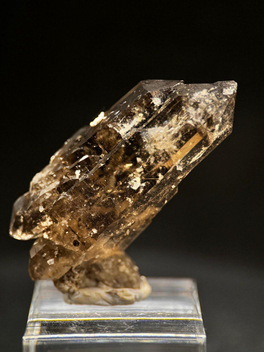 Description: Featuring crystal, clear, transparent and extremely lustrous Smokey Quartz crystals in their classical brown hues except that these exude a glistening golden glow due to their supreme lustre. The double terminated crystals originated from Galenstock , famous for some of the world's Smokey Quartz crystals