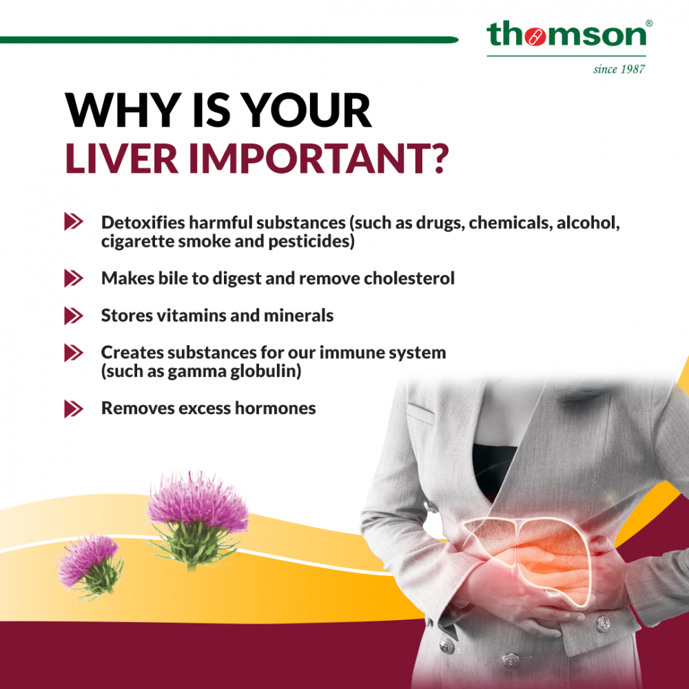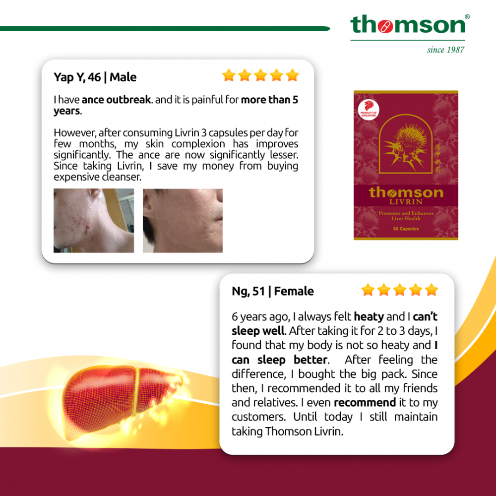 Thomson Health Livrin (30 Tablets) - Anti-Inflammatory and High In AntioxidantUsed as a liver tonic. Carefully analysed for Silymarin and Silybin content, heavy metals and microbial contaminationWHAT DOES OUR LIVER DO?Detoxifies harmful substances (such as drugs, chemicals, alcohol, cigarette smoke and pesticides)Makes bile to digest and remove cholesterolStores vitamins and mineralsCreates substances for our immune systems (such as gamma globulin)Remove excess hormonesWHAT CAN HARM THE LIVER?StressLack of sleepAlcoholCertain medication and drugsSmokingPollutionExposure to chemicals at work. (e.g: mechanics, gardener, hair stylist, etc)DID YOU KNOW POOR LIVER FUNCTION CAN CAUSE:Stomach discomforts (such as bloating)Bad breathCoated tongue in the morningChronic fatigueDark eye circlesHeatinessMild nausea, (especially after fatty meals)Poor appetiteSkin problemsUnpleasant mood changesDETAILS:-Each capsule contains 300mg of Milk Thistle extract from Europe with minimum 240mg (80%) Silymarin 90mg of Silymarin is the active constituents Silybin A & B.-Free of pesticides, fungicides, yeast, sugar, colouring and preservatives-Manufactured under strict Good Manufacturing Practice (GMP) with an in-house quality control laboratoryDOSAGE RECOMMENDATIONS:1 to 3 capsules daily in divided dose (Perferably 1 capsule in the morning and 2 capsules at night)