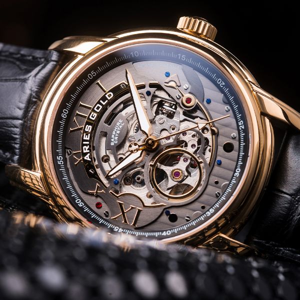Each Aries Gold Watch comes with its very Own Wooden and Velvet Presentation Box.